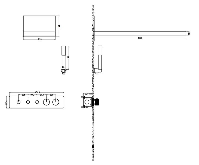 Система душевая Boheme Fusion встраиваемая термостат, верхний душ, ручной душ, черная (131-B)