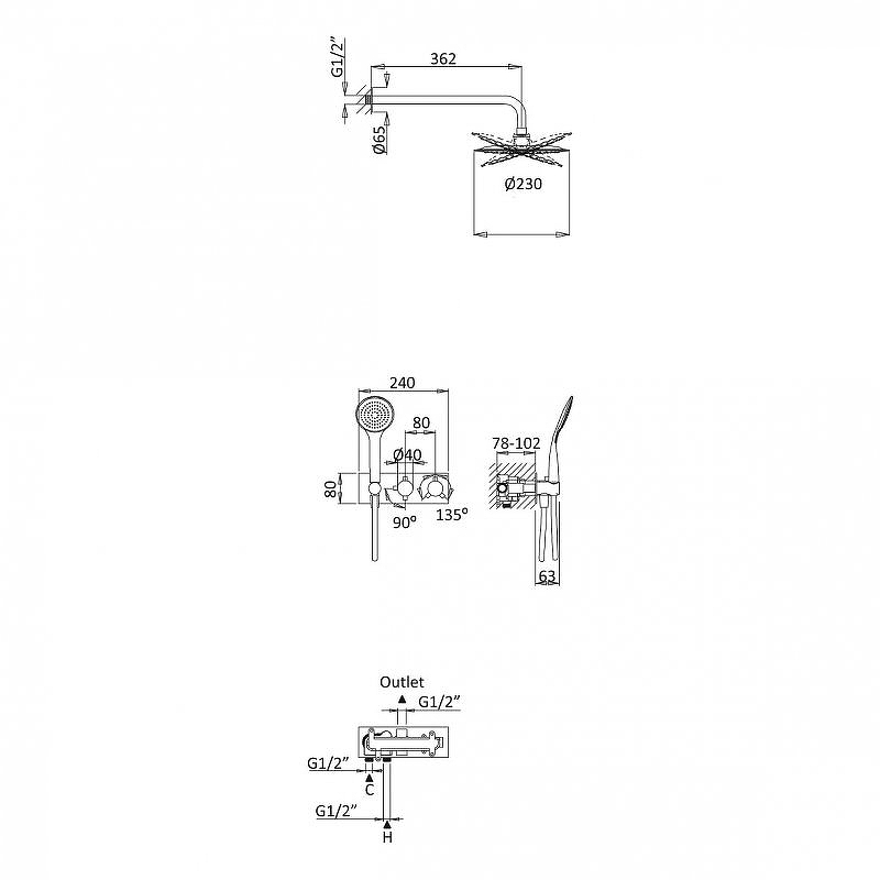 Система душевая Cezares Articoli Vari встраиваемая (CZR-B-VDIM-T-01)