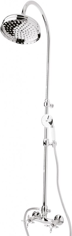 Душевая система CEZARES GOLF-CD-01-Bi: смеситель, верхний, ручной душ, стойка, хром/ручки белые.