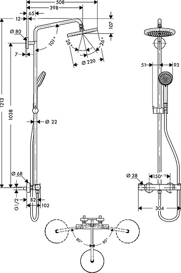 Система душевая Hansgrohe Croma 220 Showerpipe (27185000)