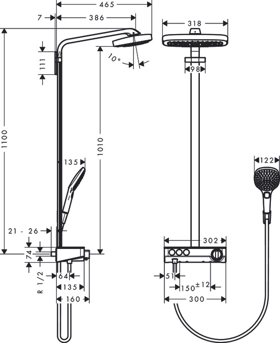 Система душевая Hansgrohe Raindance Select E 300 3jet хром (27127000)