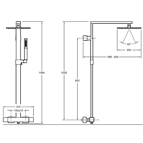 Душевая колонна с термостатическим смесителем и квадратным верхним душем