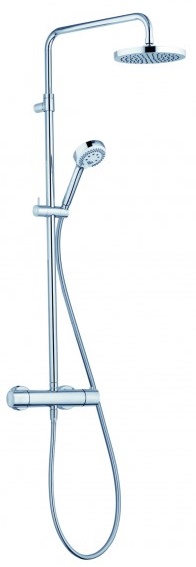 Гарнитур душевой Kludi Logo Dual Shower System с термостатом для душа и ручной лейкой 3S: настенный монтаж, регулировка кронштейна вверх-вниз и влево-вправо, класс расхода воды ВВ, рукоятка выбора температуры с ограничителем горячей воды при 38°С.