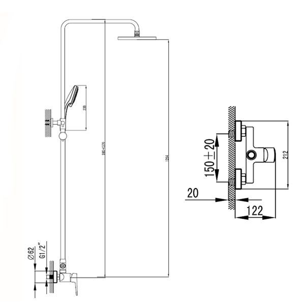 Душевая система со смесителем SmartSant Инлайн комплект штанга, три функции, душевая лейка, лейка верхняя SM1508AA