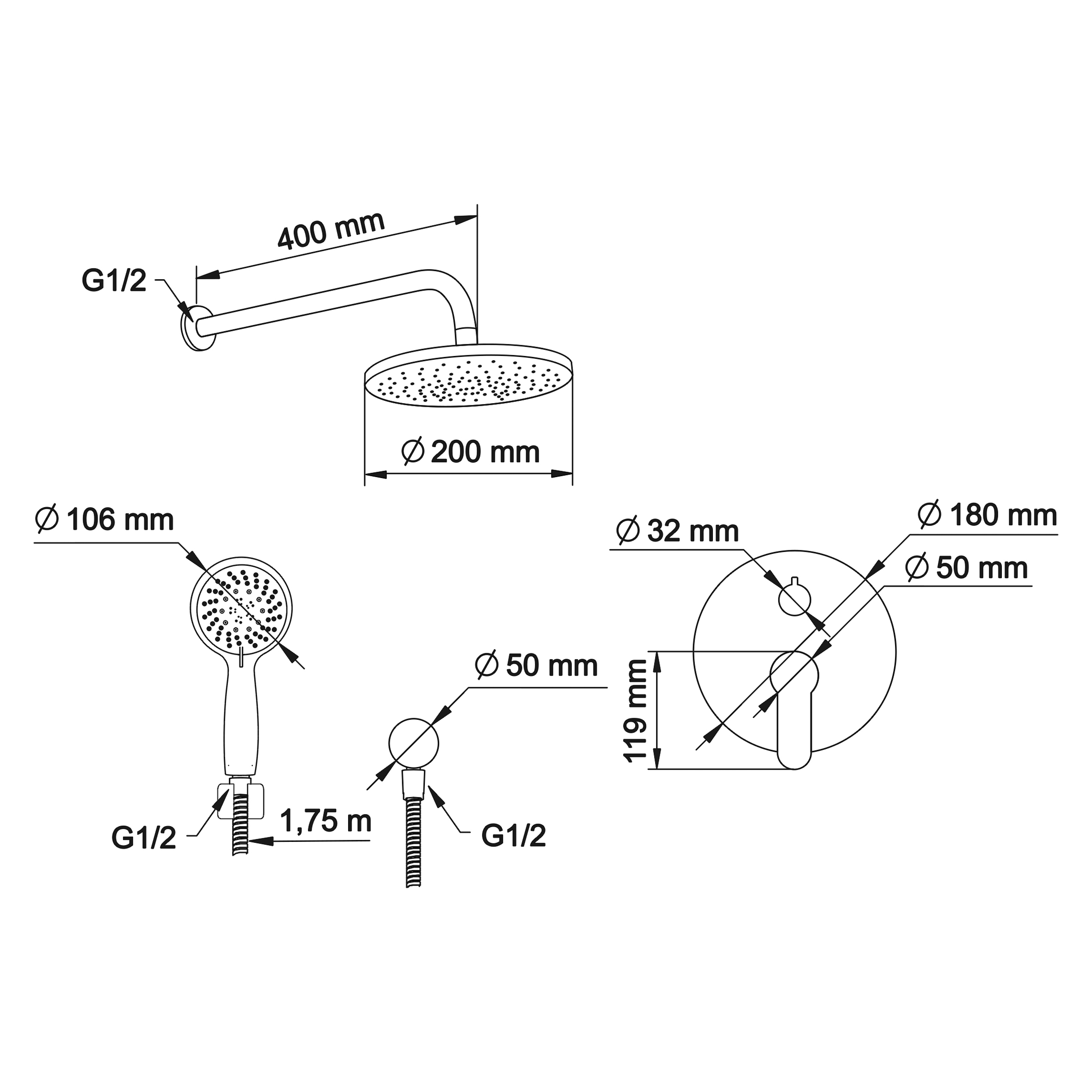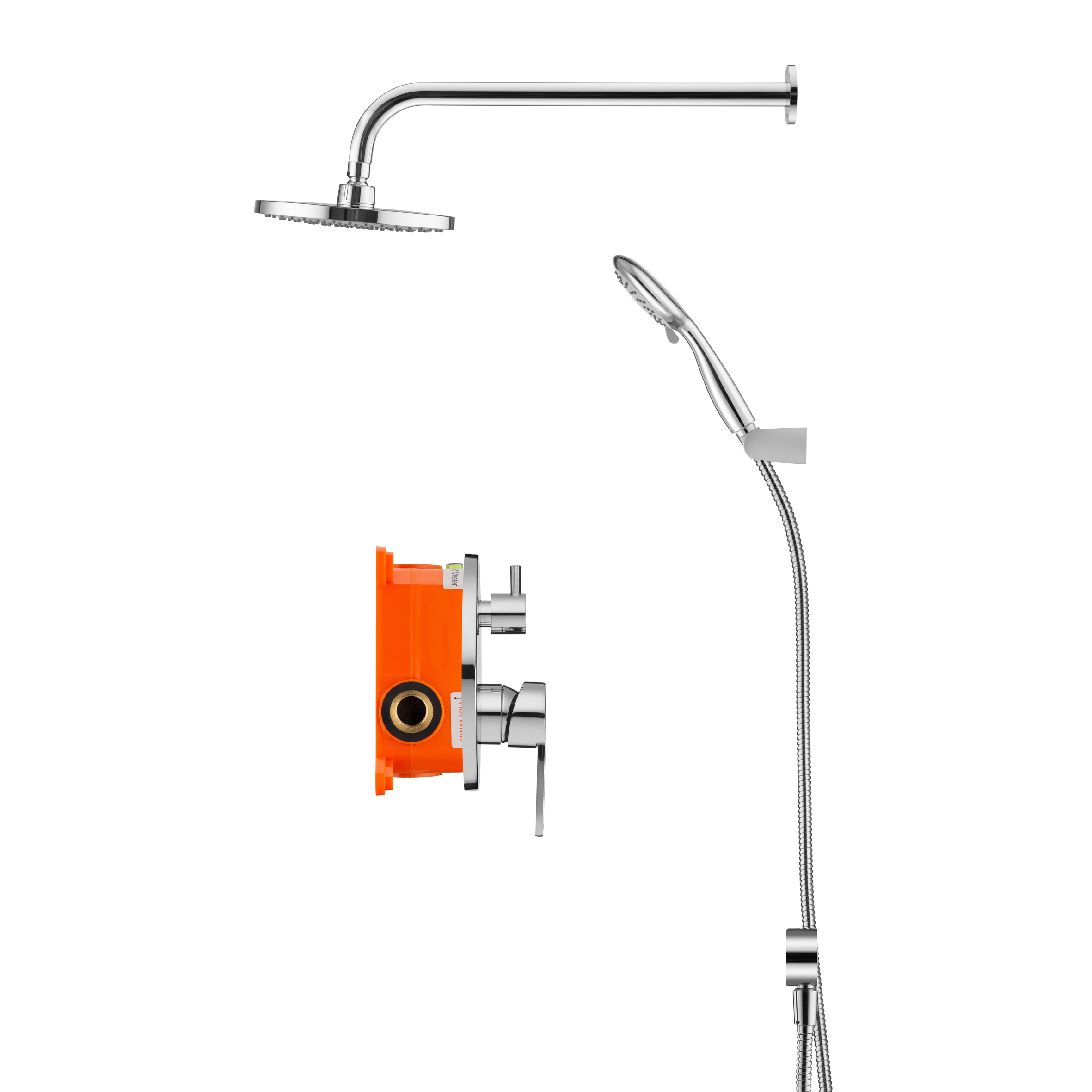 - верхний душ (душевая головка) с регулировкой наклона, настенный монтаж