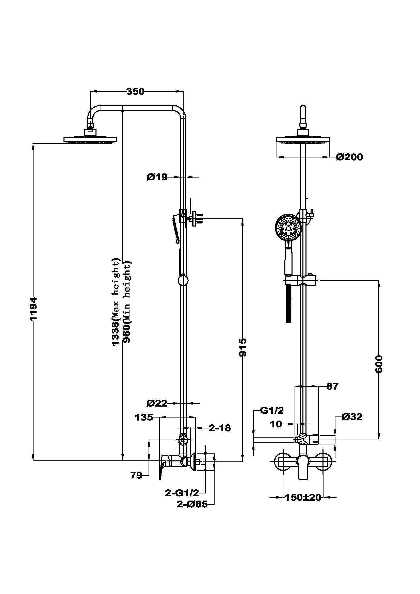 Регулируемая по высоте телескопическая штанга: 960 мм - 1 338 мм