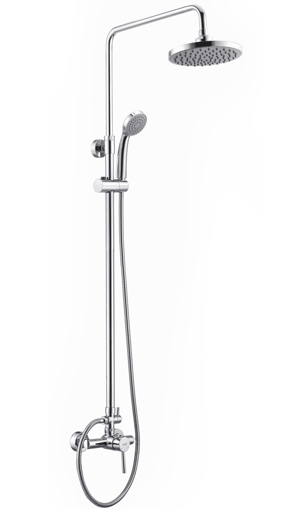 Стойку для душа А 12202 можно регулировать по высоте. Для этого необходимо выдвинуть верхнюю часть стойки и зафиксировать на необходимой Вам высоте при помощи гайки верхнего крепления.