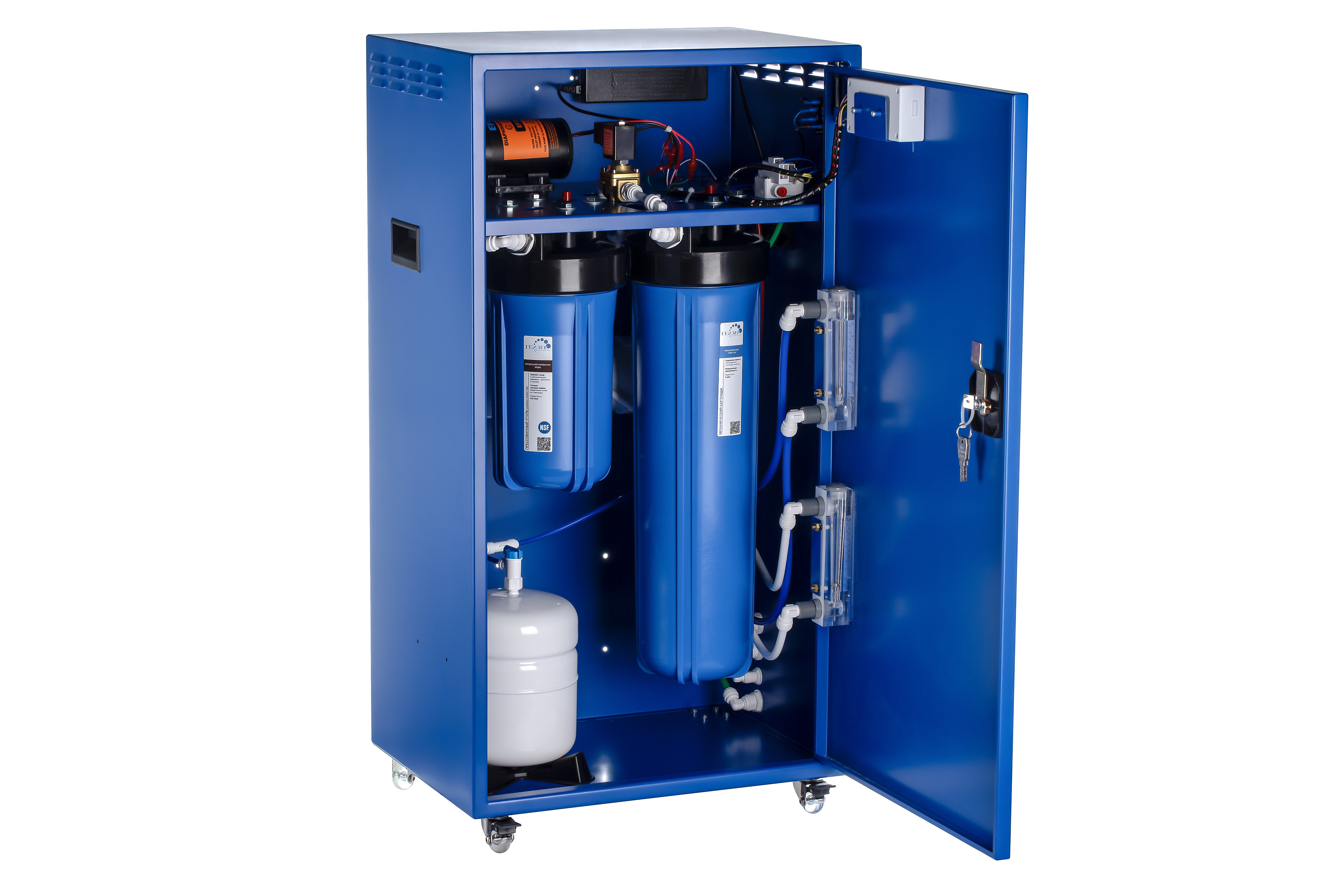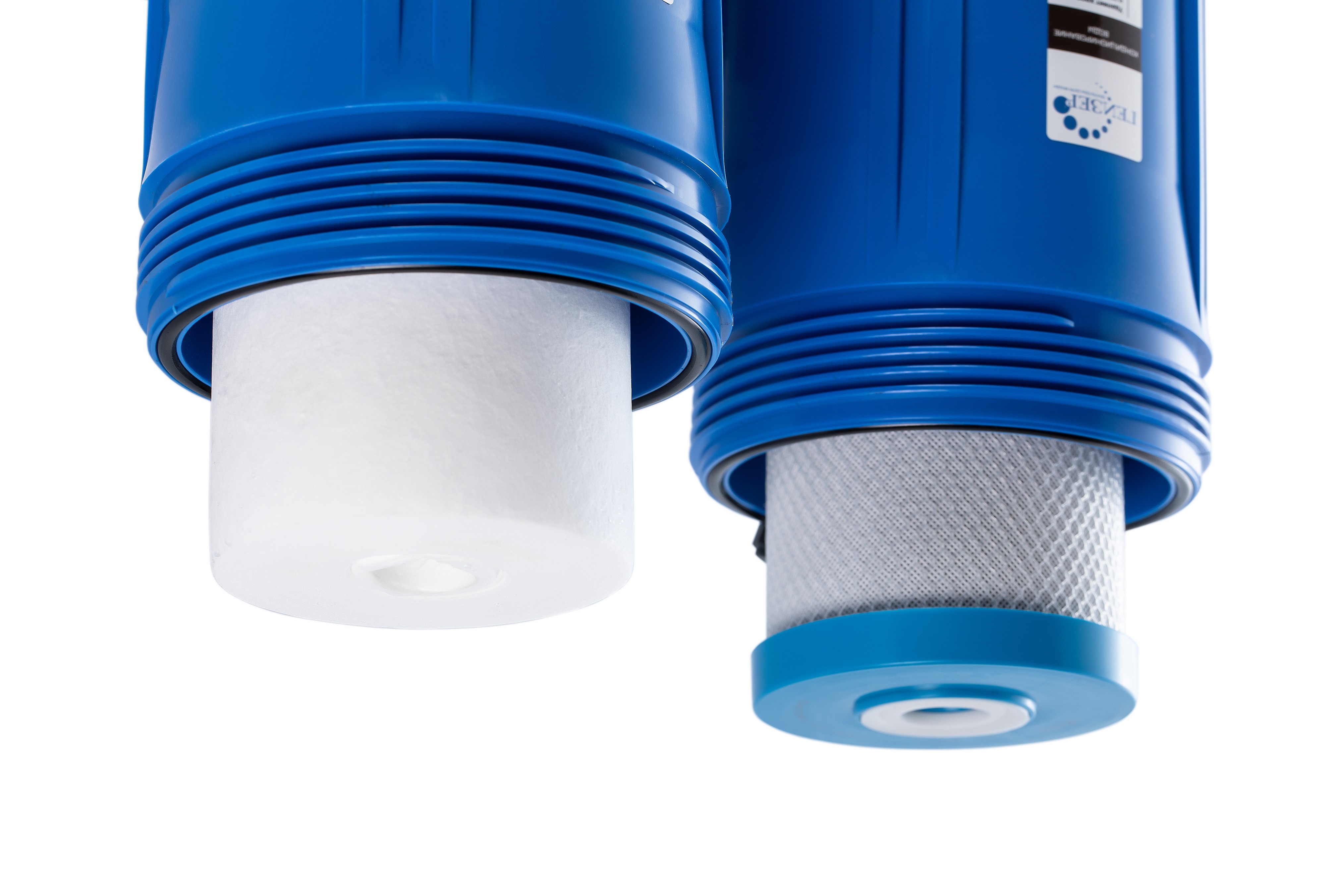 II ступень — обратноосмотическая мембрана для глубокой очистки воды. Сквозь поры мембран 0,0001 мкм проходят только молекулы воды, поэтому эффективность очистки достигает 99,9%