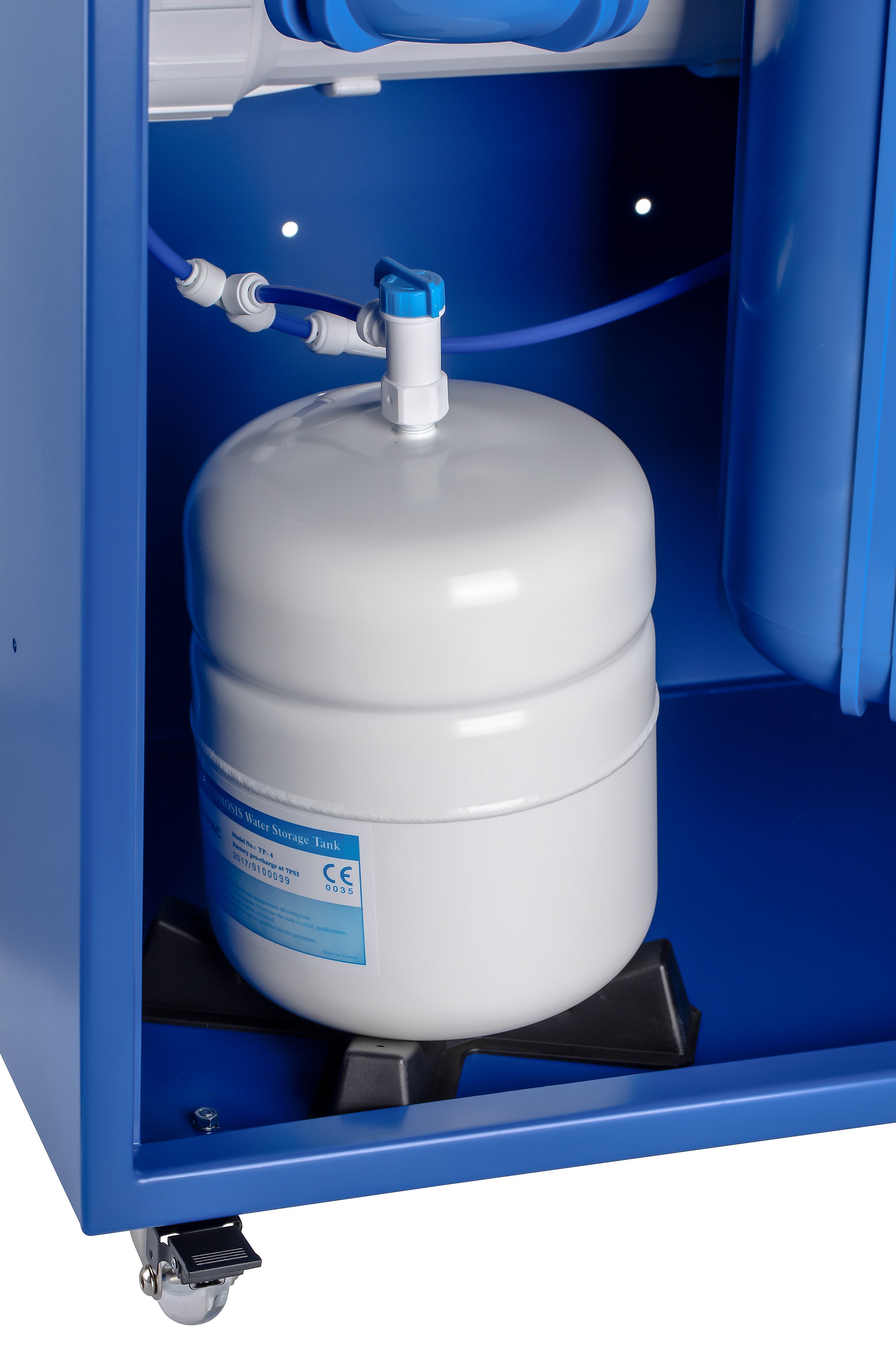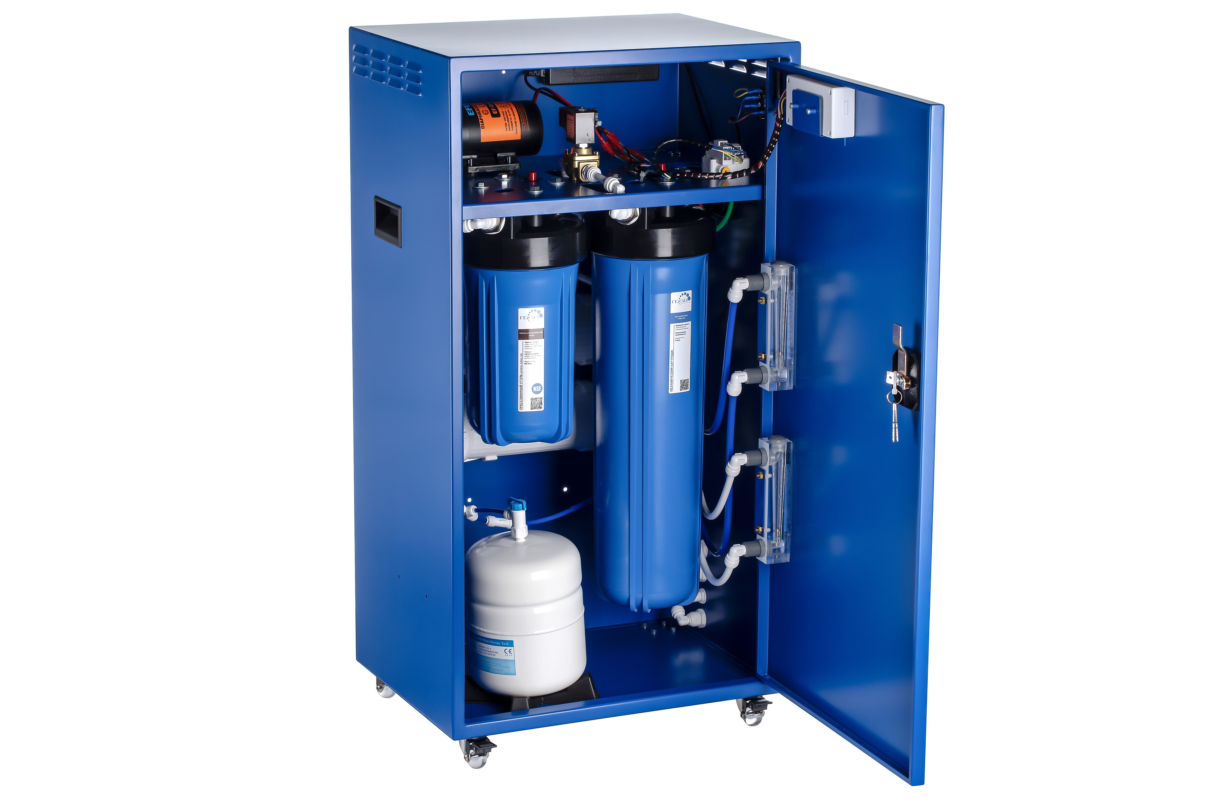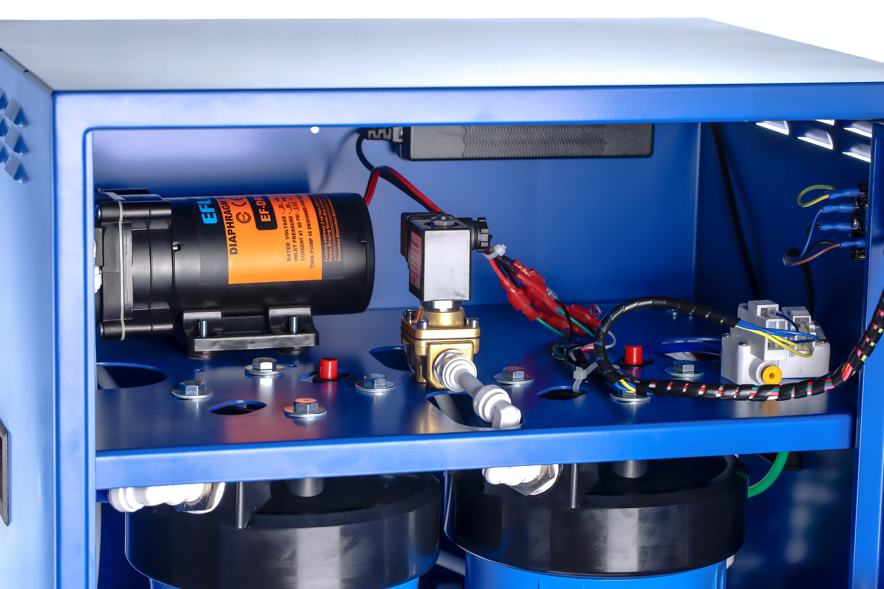 II ступень — обратноосмотическая мембрана для глубокой очистки воды. Сквозь поры мембран 0,0001 мкм проходят только молекулы воды, поэтому эффективность очистки достигает 99,9%