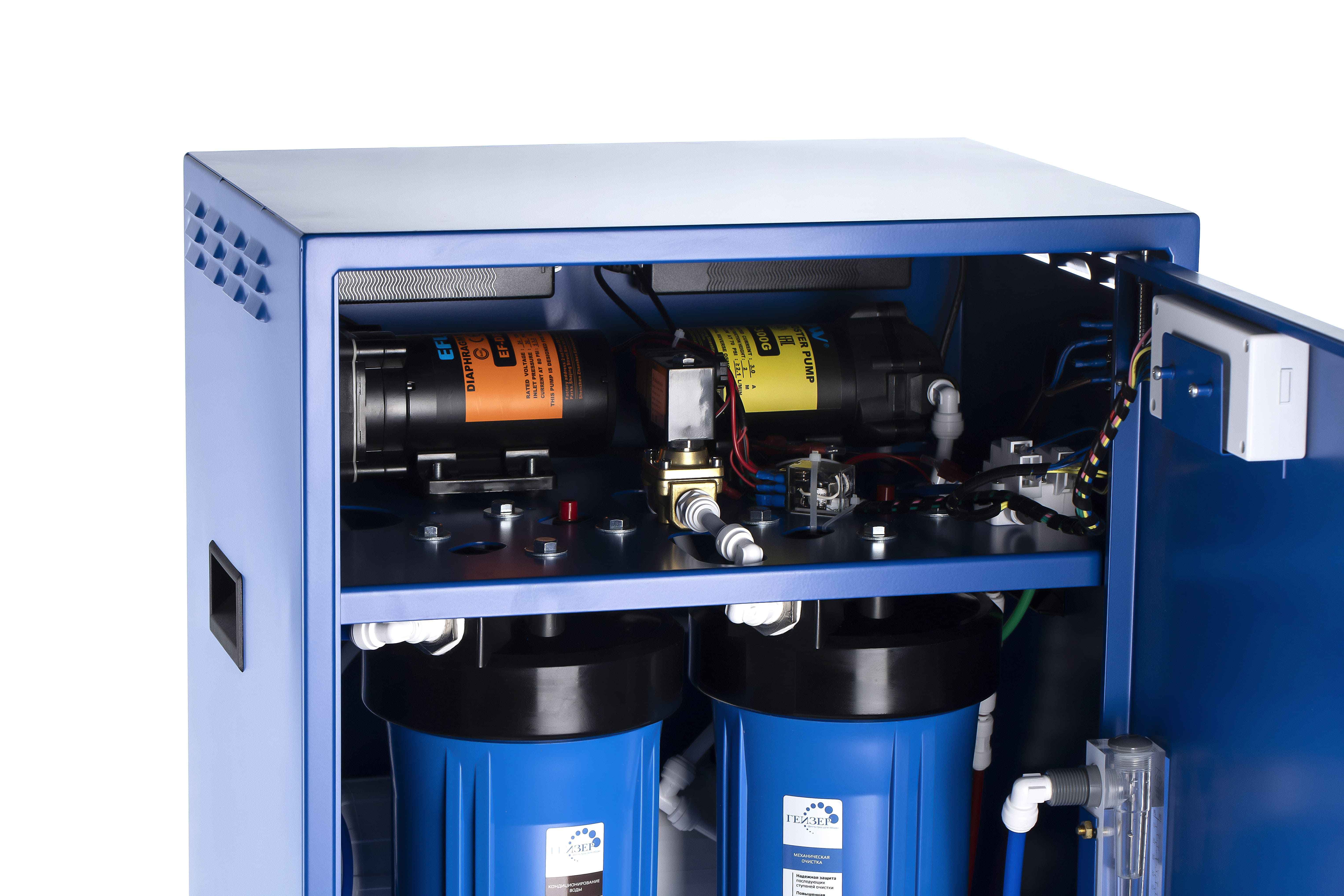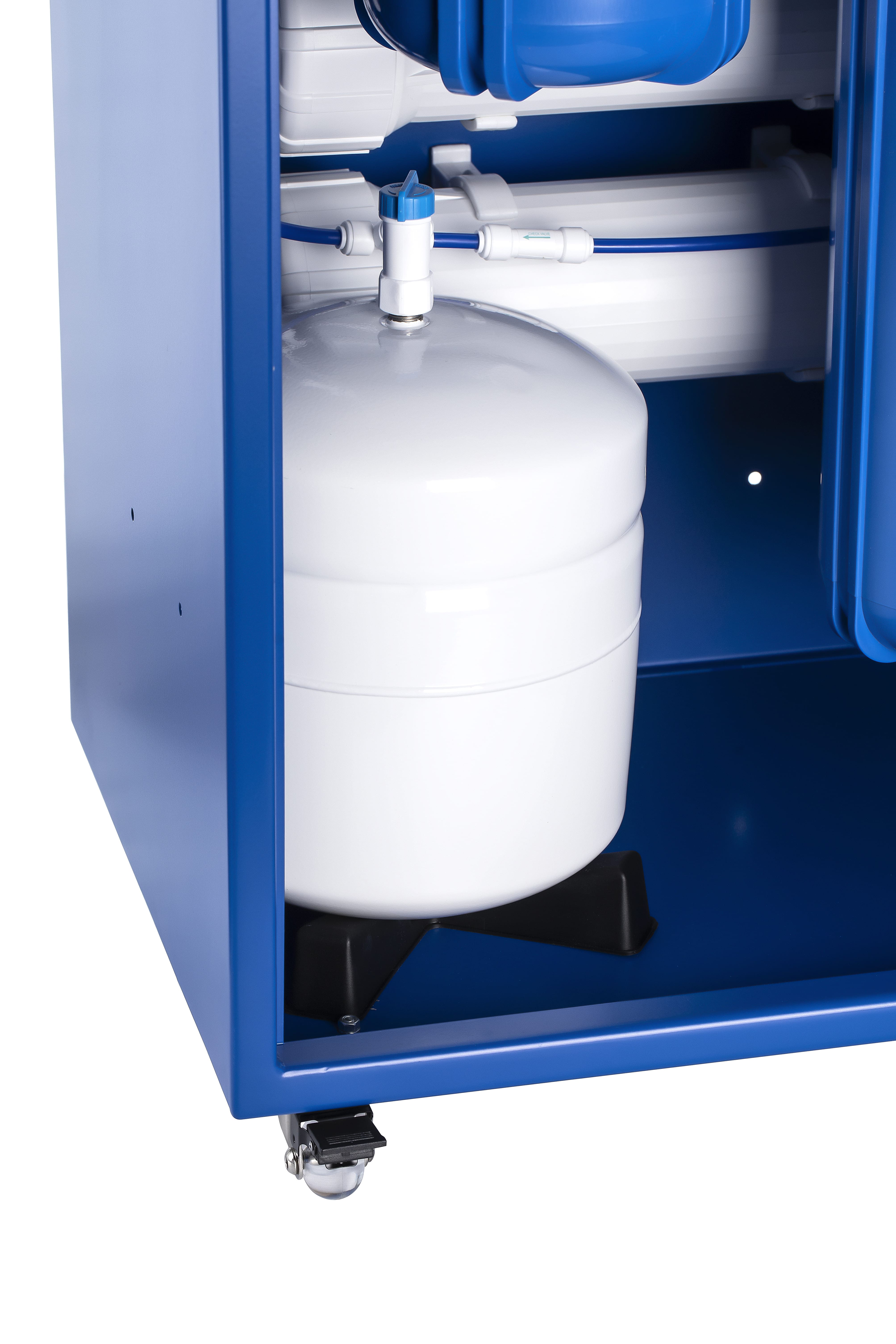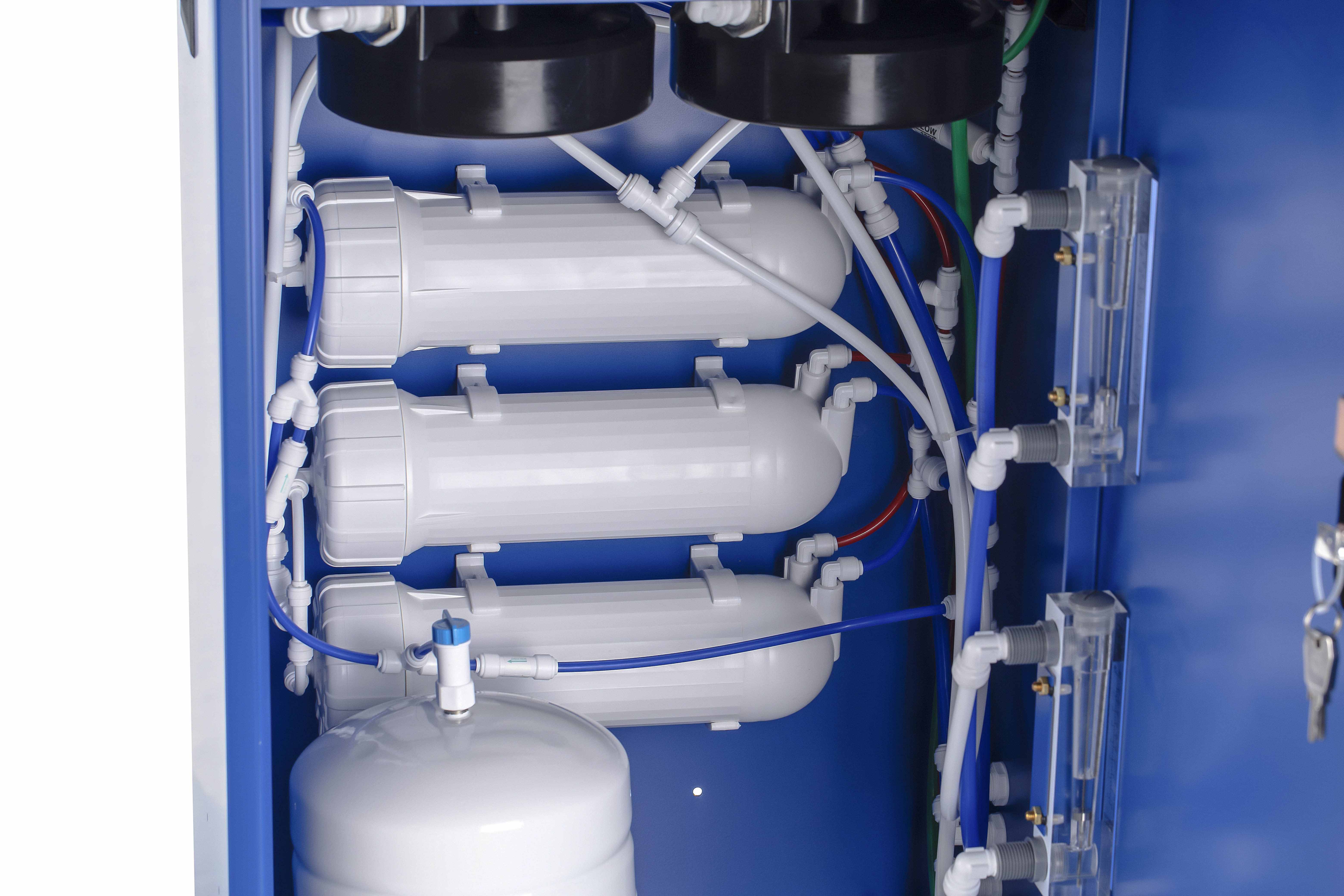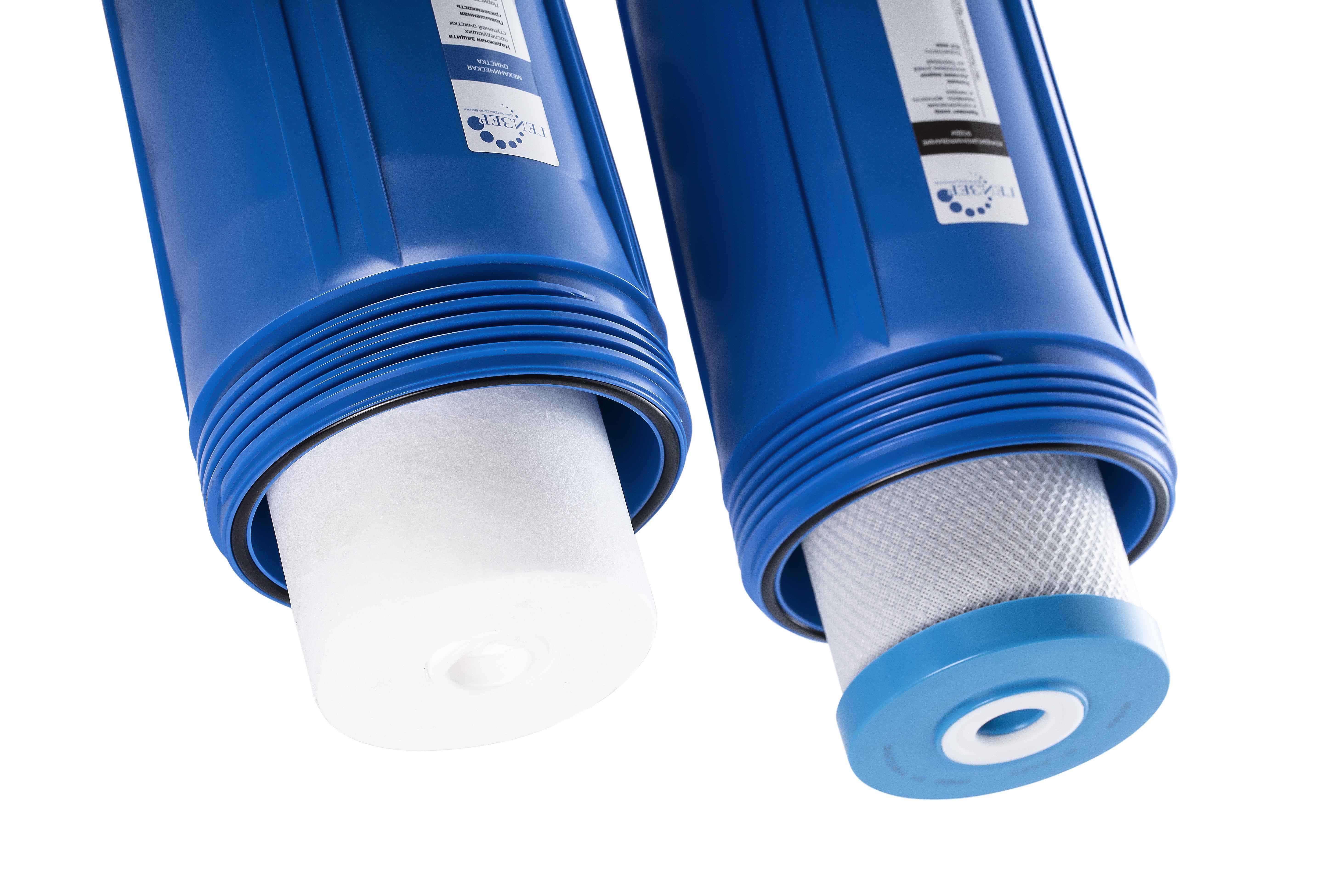 II ступень — обратноосмотическая мембрана для глубокой очистки воды. Сквозь поры мембран 0,0001 мкм проходят только молекулы воды, поэтому эффективность очистки достигает 99,9%
