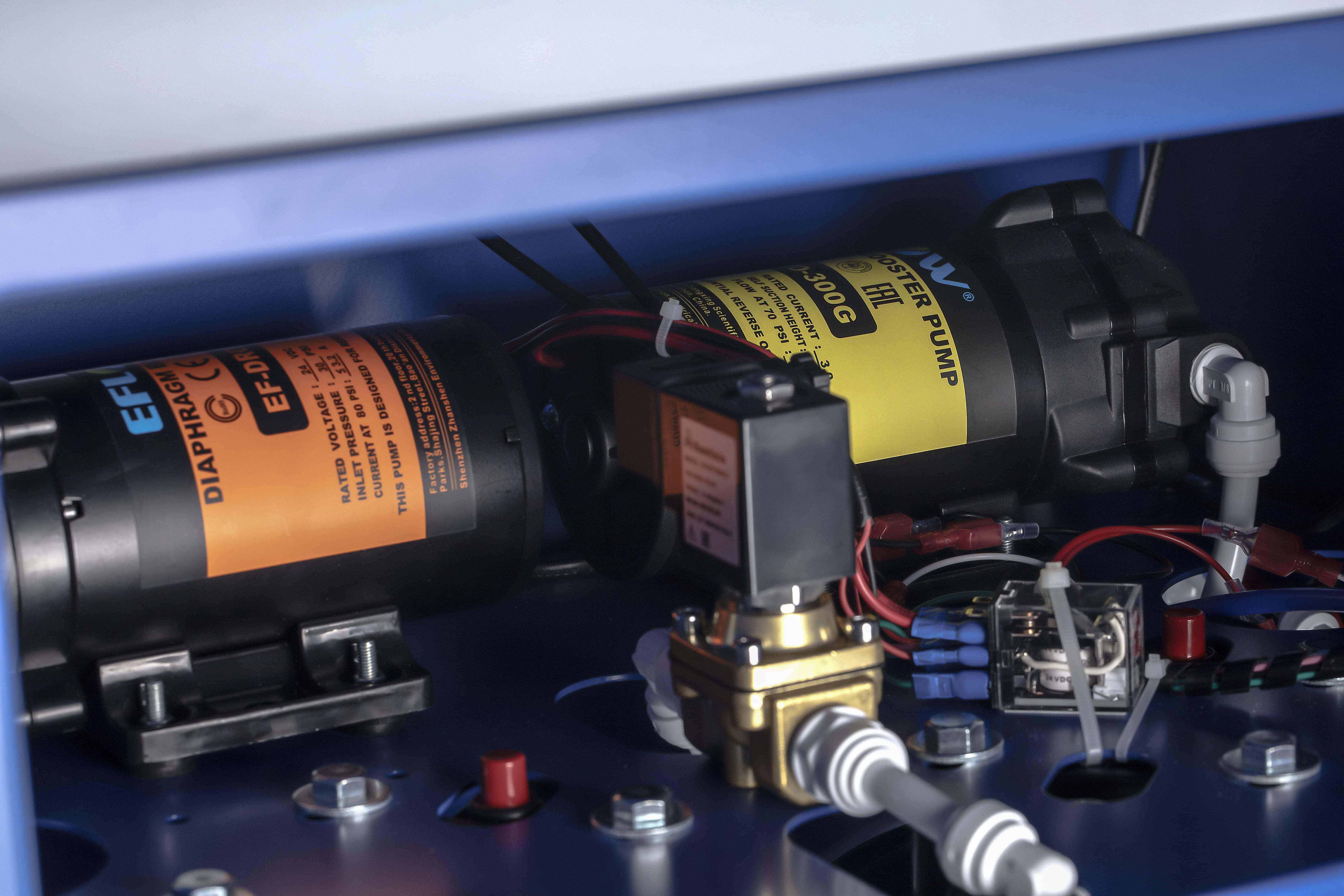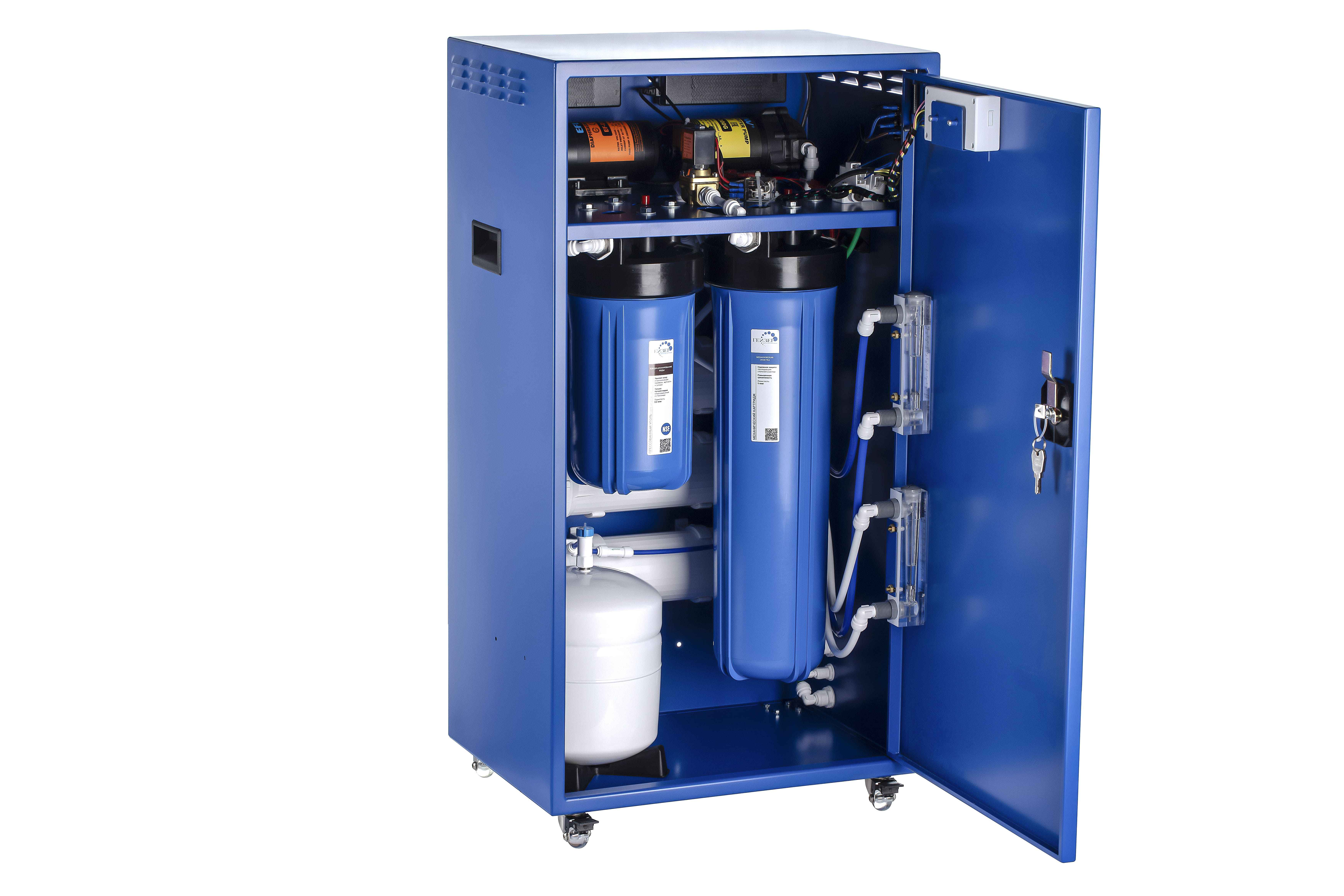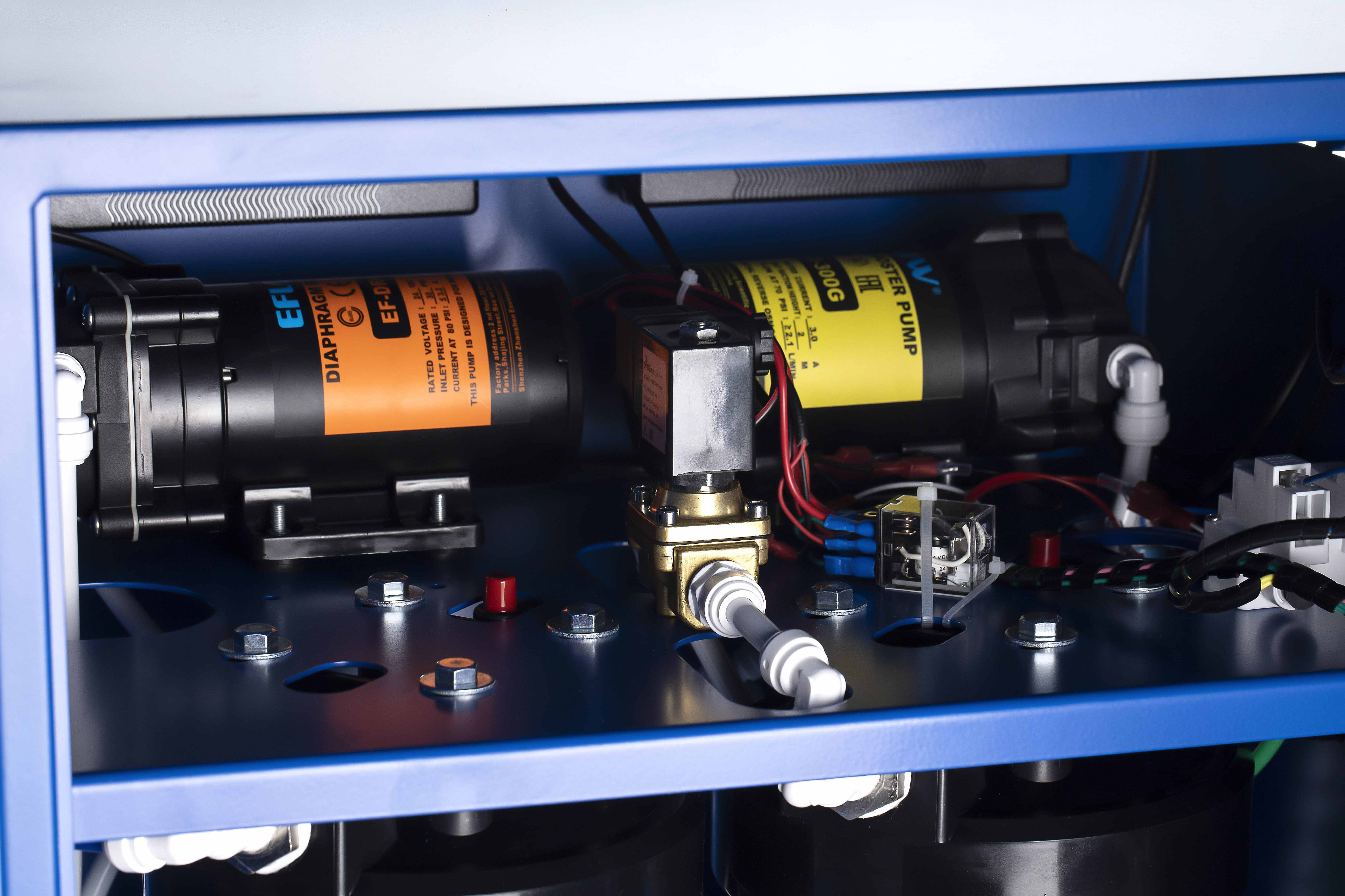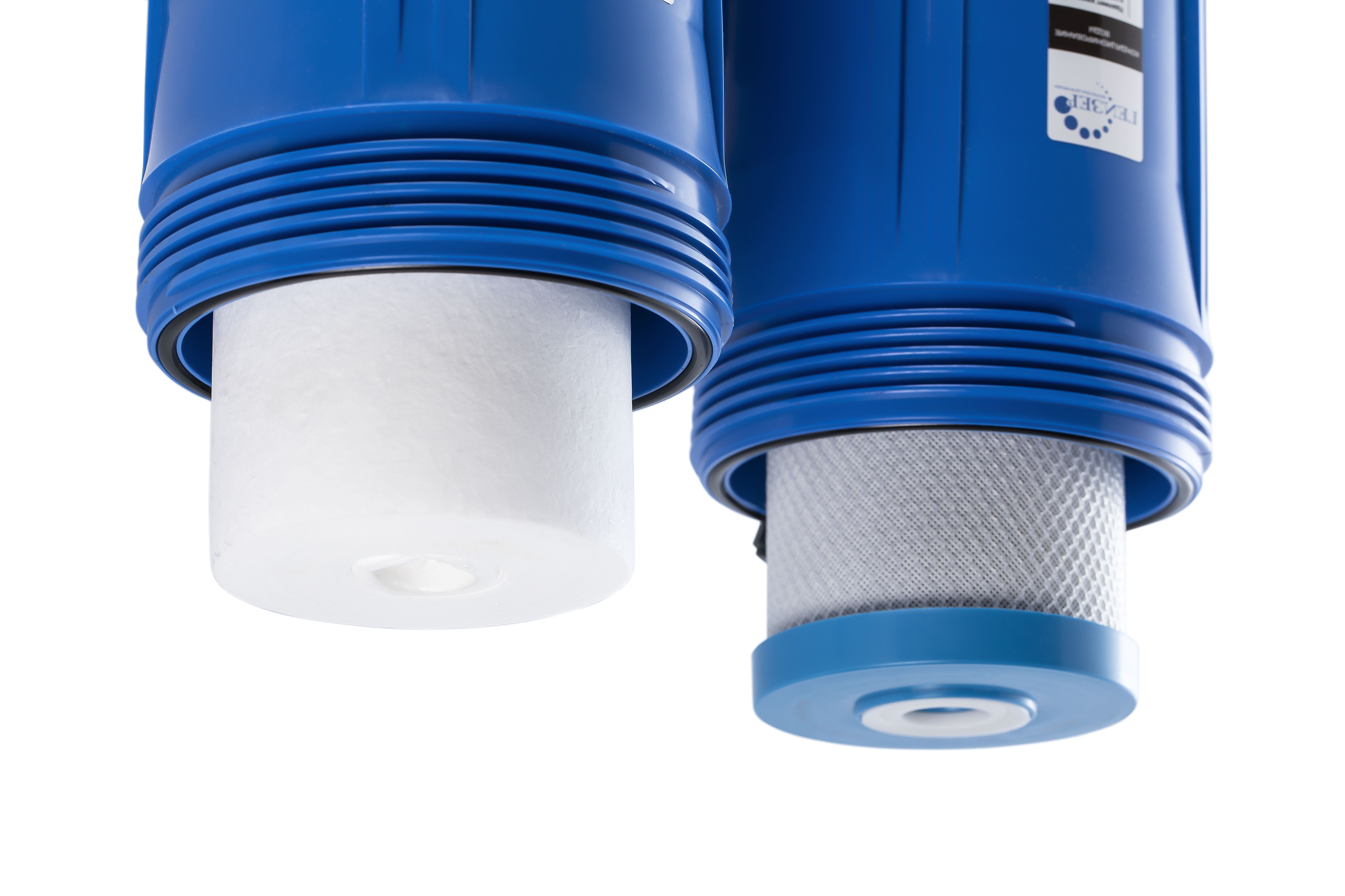 II ступень — обратноосмотическая мембрана для глубокой очистки воды. Сквозь поры мембран 0,0001 мкм проходят только молекулы воды, поэтому эффективность очистки достигает 99,9%