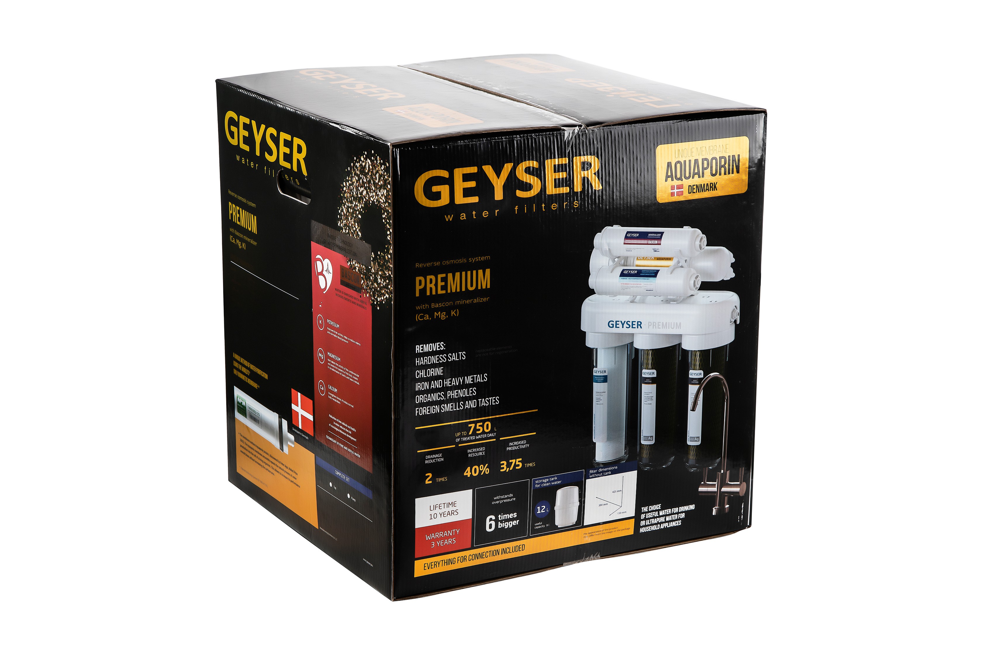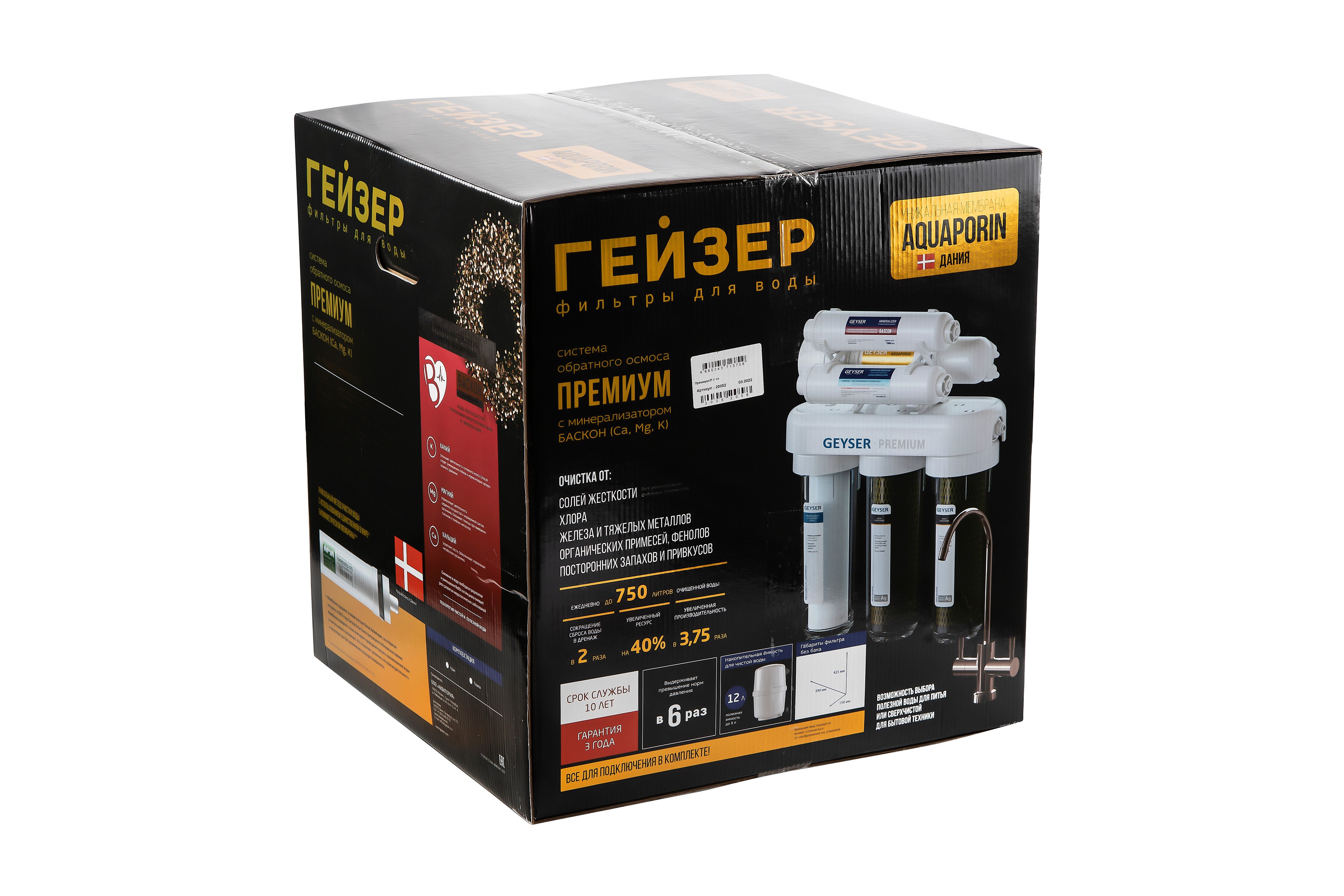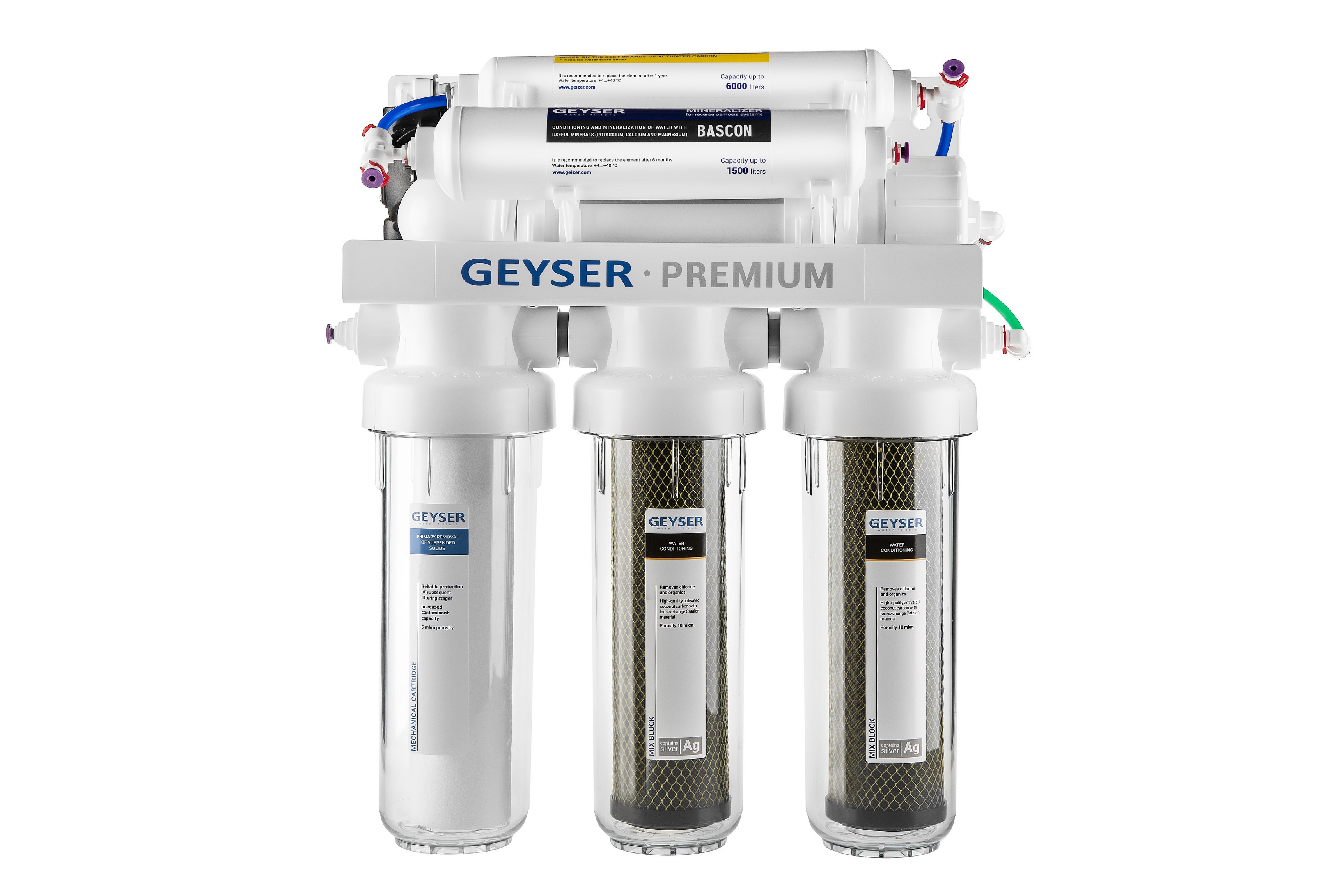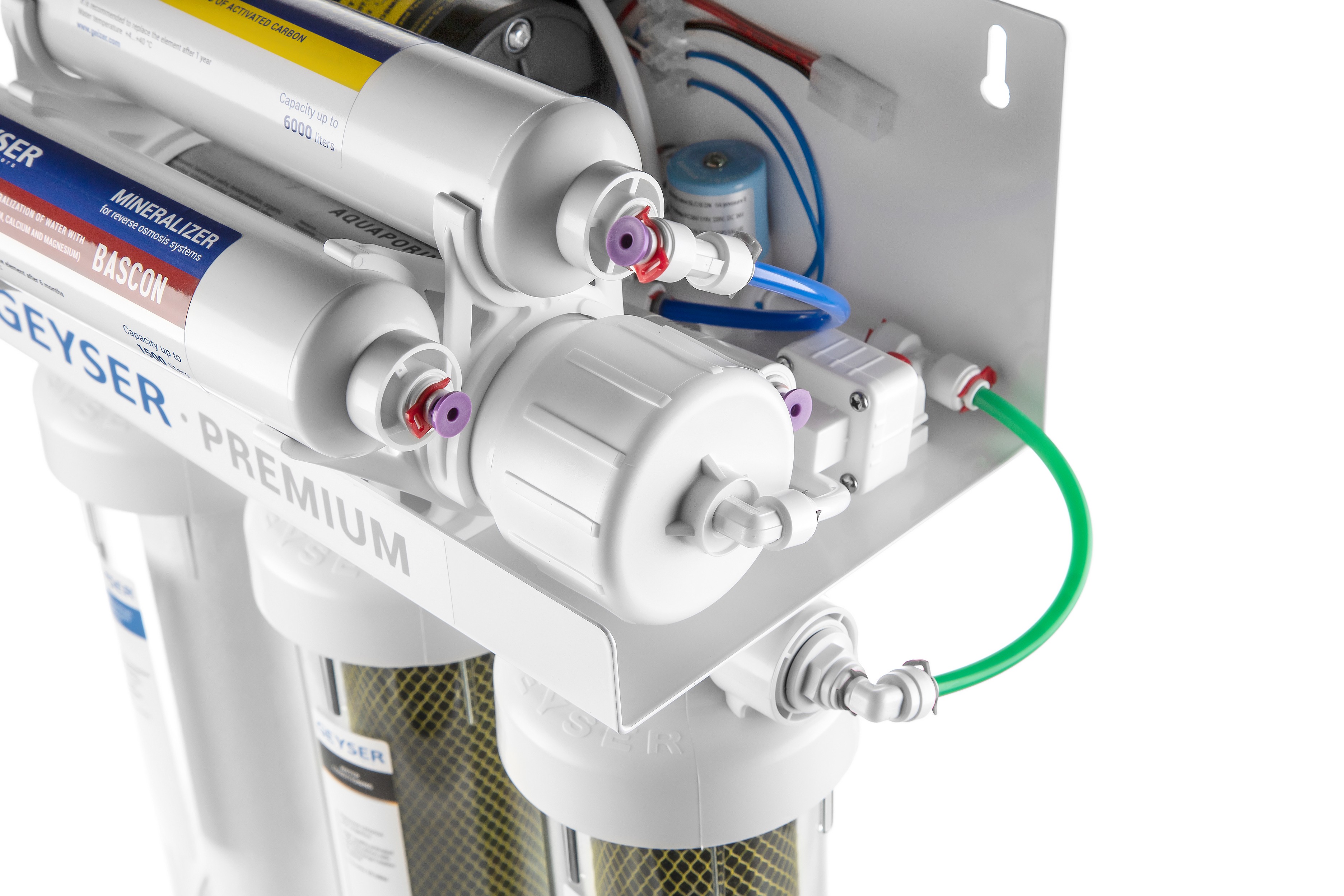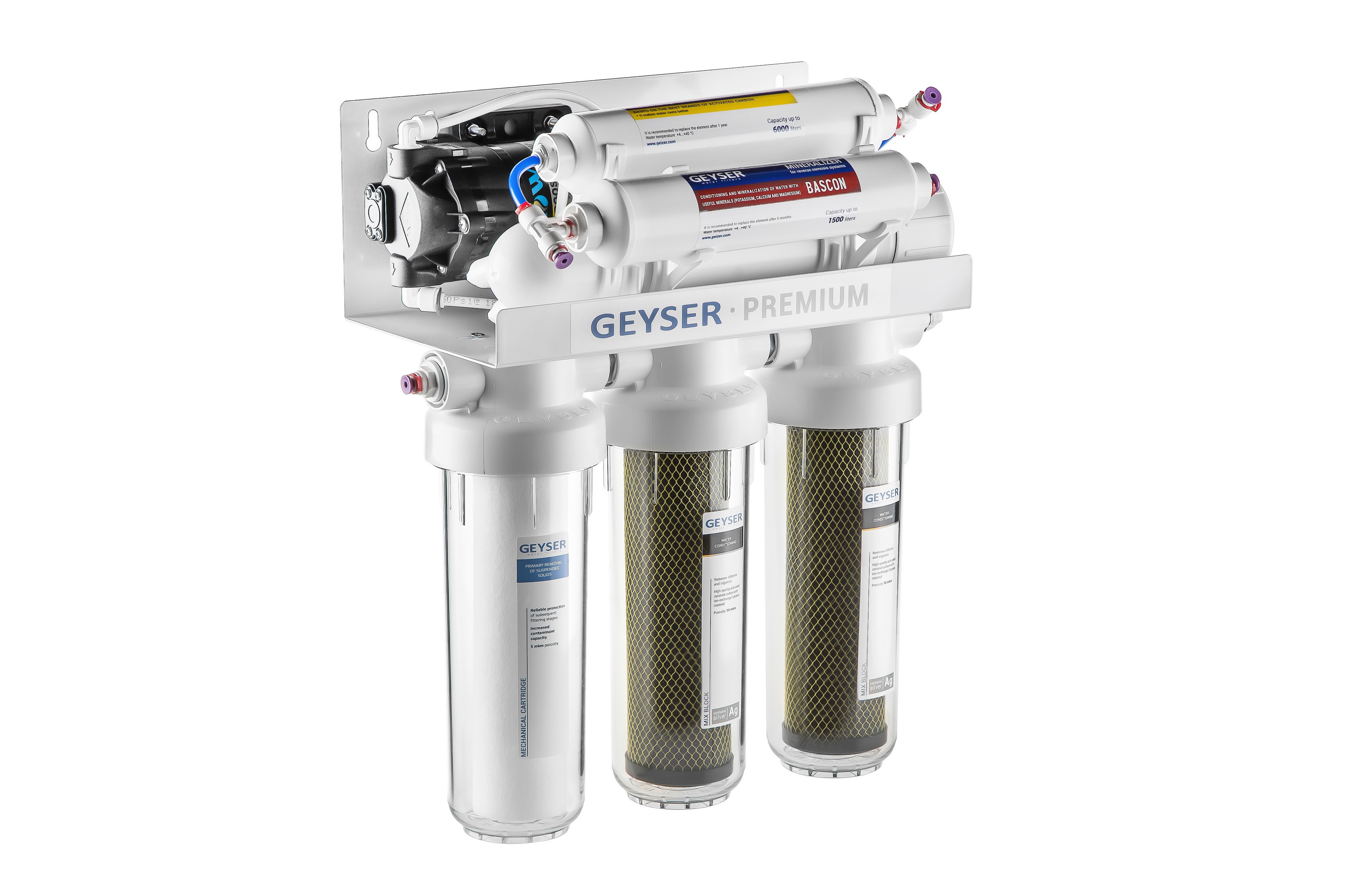 Система обратного осмоса Гейзер Премиум используется для доочистки водопроводной воды от вредных примесей, таких как железо, бактерии, хлорорганические и органические примеси, хлор, тяжелые металлы, нитраты, механические частицы, избыток солей жесткости, а также для корректировки ее минерального состава, что делает воду абсолютно чистой и безопасной.