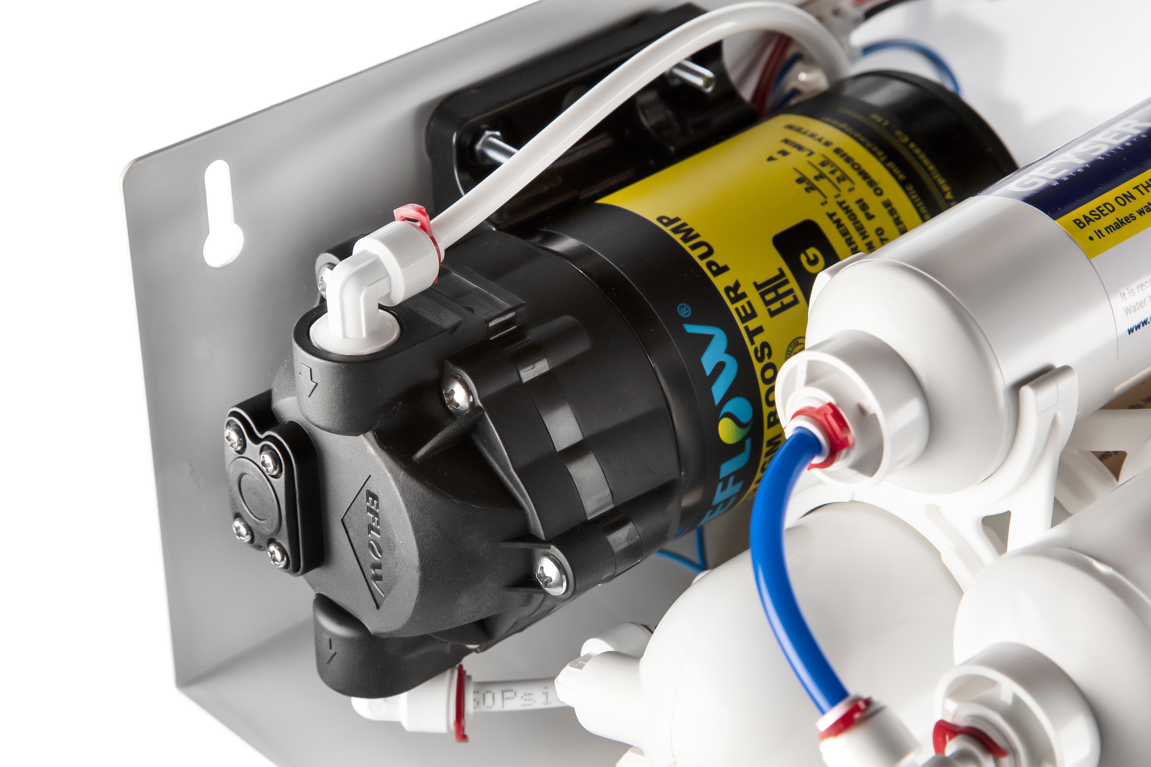 Фильтр Гейзер Премиум П работает при давлении в подводящей магистрали не менее 1 атм. Устройство повышения давления, входящее в комплект, повысит уровень давления до необходимого рабочего.
