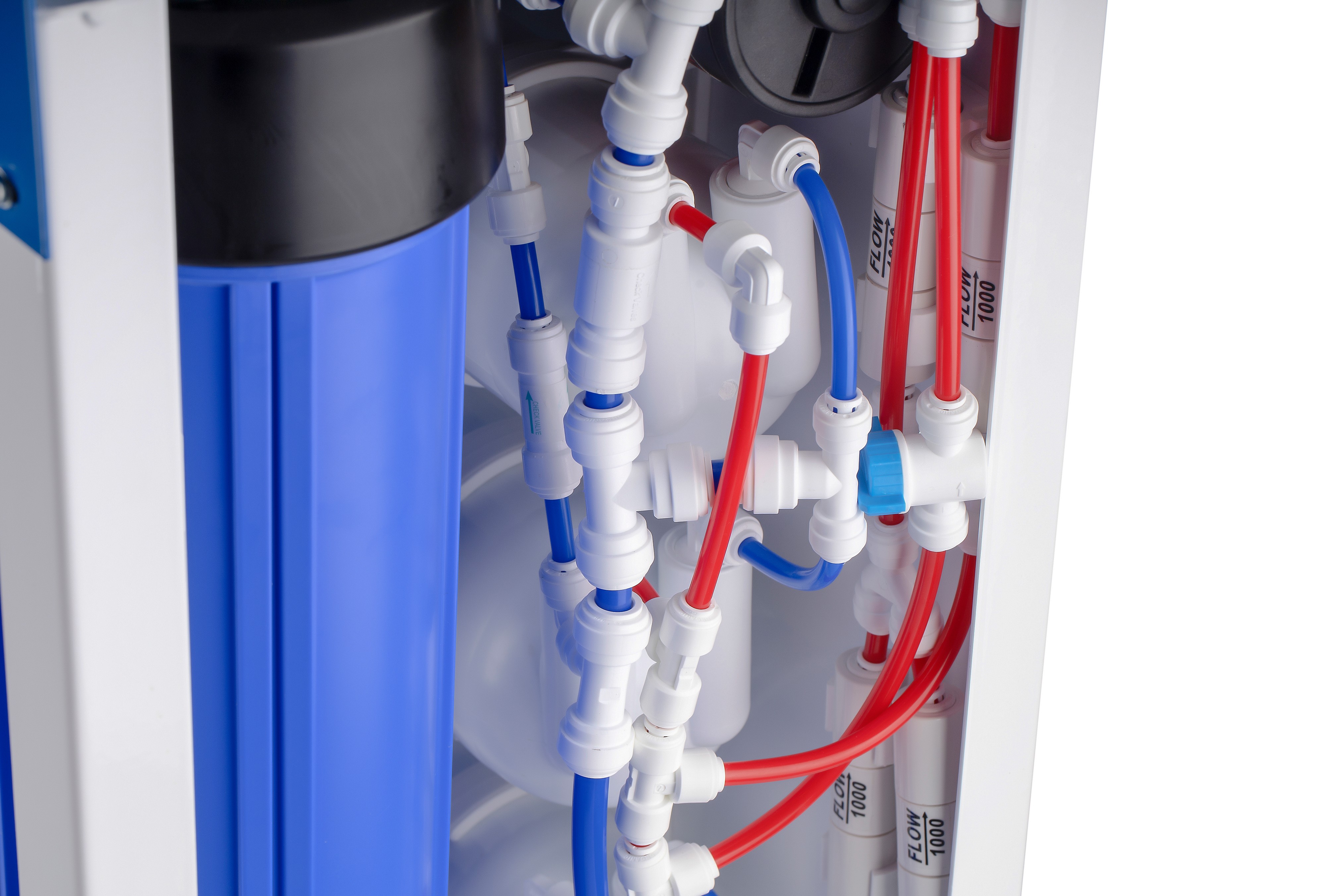 - Постфильтрация - кондиционирование с помощью картриджа с угольным сорбентом СВС стандарта 20sl, ресурс 20000 л.