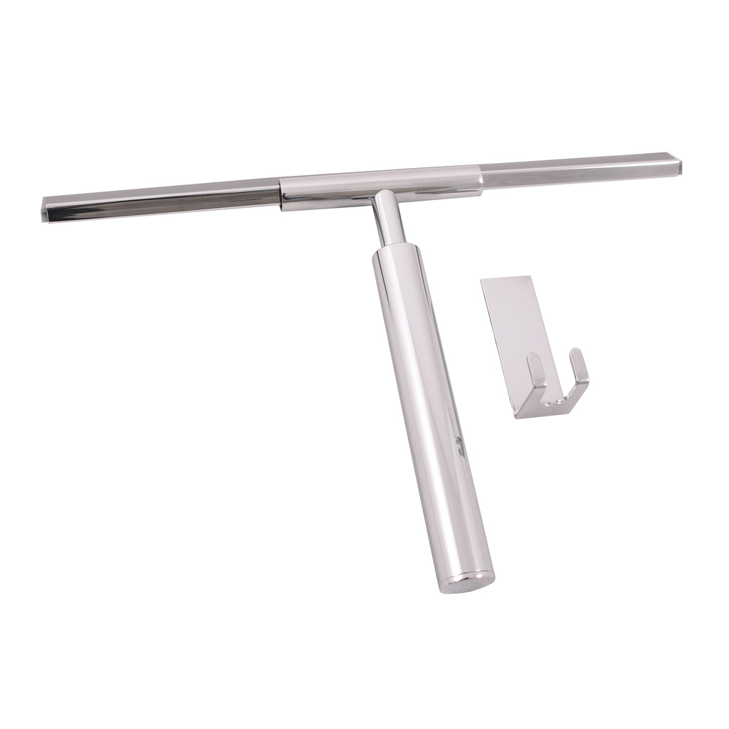 Скребок (ракель) для чистки зеркал и стекол, ЦВЕТ ХРОМ, арт. COA1401. Стильный предмет интерьера, предназначенный для ванной комнаты. Материал, применяемый для производства аксессуара - латунь и резина. В комплект входит настенный держатель. Практичная и в то же время продуманная вещь, выполненная в стиле модерн.