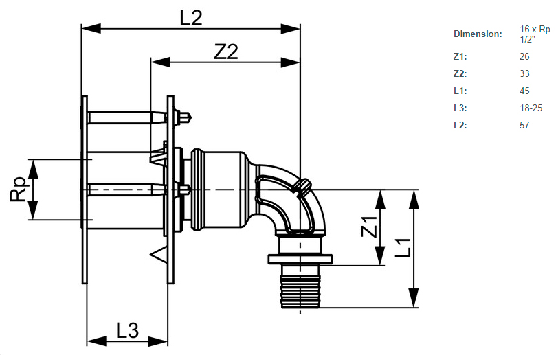 Сквозное угловое фланцевое присоединение TECEflex 16х1/2" ВР (бронза) (708705)