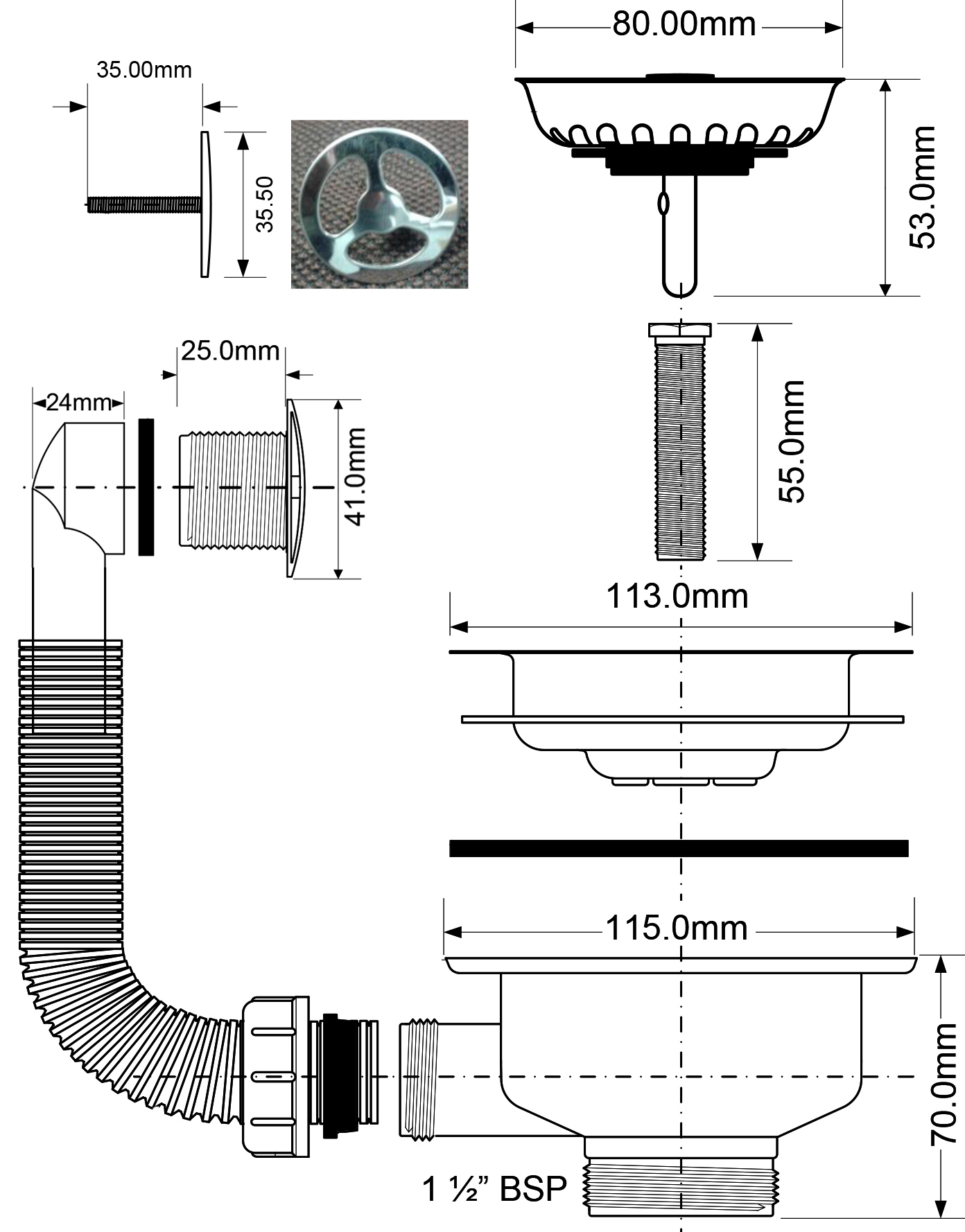 Слив-перелив (античная бронза) McAlpine (OF2-113SAB)