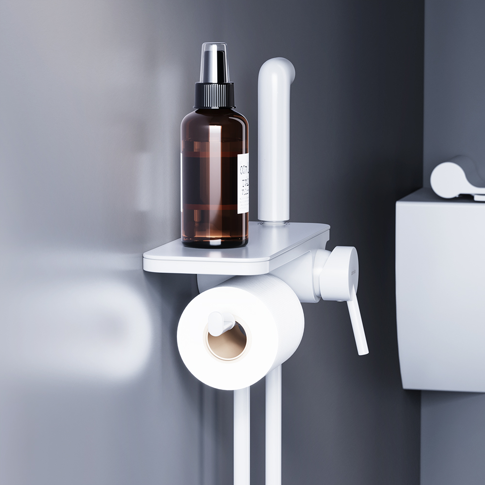 Самое практичное гигиеническое решение: смеситель оснащен удобной полочкой на которой поместится все что необходимо под рукой и держателем для туалетной бумаги.