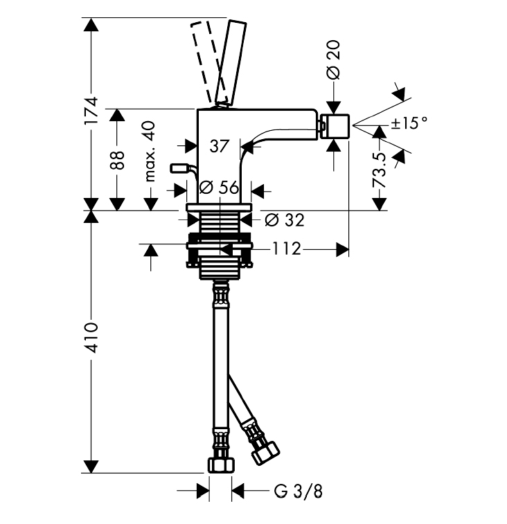 Смеситель для биде Axor Citterio 90 со сливным гарнитуром хром (39210000)
