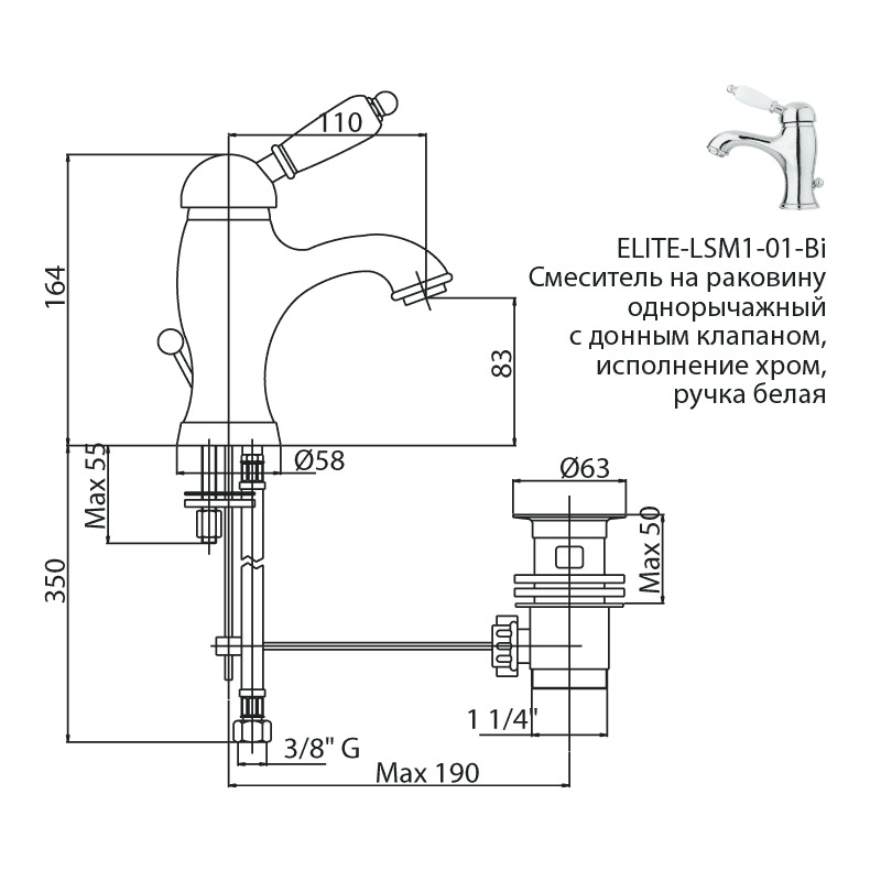 Смеситель для биде Cezares Elite черный, ручка рычаг - черный (ELITE-LSM1-NOP)