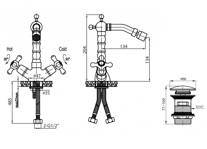 Смеситель на биде с донным клапаном, белый.