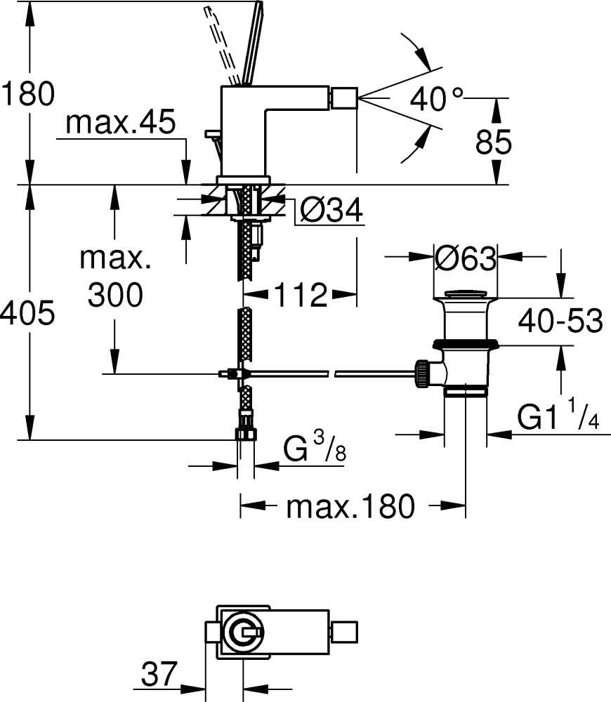 Смеситель для биде Grohe Eurocube Joy с донным клапаном (23664000)