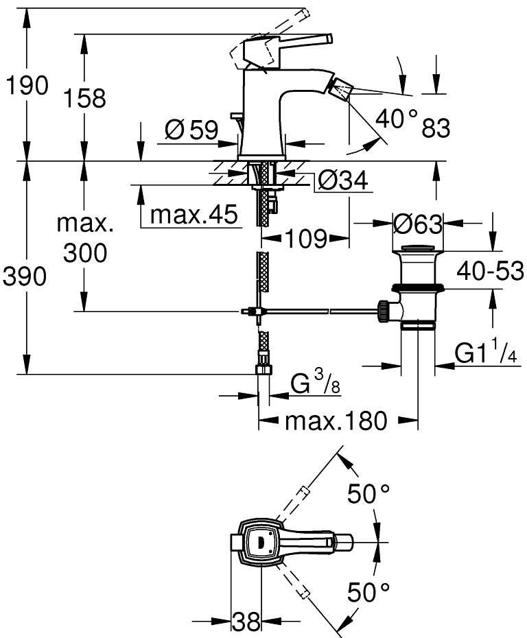 Смеситель для биде Grohe Grandera с донным клапаном (23315IG0)
