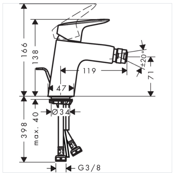 Смеситель для биде Hansgrohe Logis 71204000 с донным клапаном.