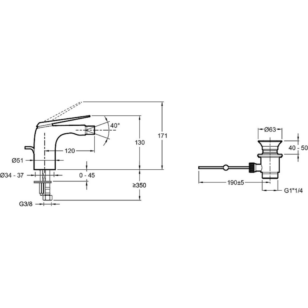 Смеситель для биде Jacob Delafon Avid с донным клапаном хром (E97014-CP)