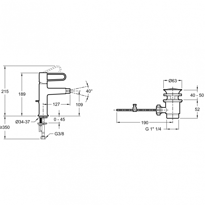 Смеситель для биде Jacob Delafon Odeon Rive Gauche хром (E21033-CP-CP)