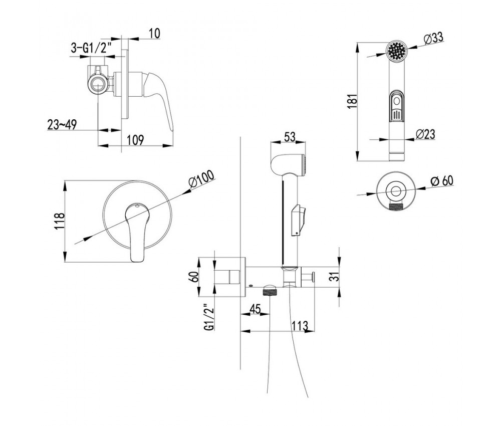 Смеситель для биде Lemark Plus Advance встраиваемый, с гигиеническим душем (LM1219C)