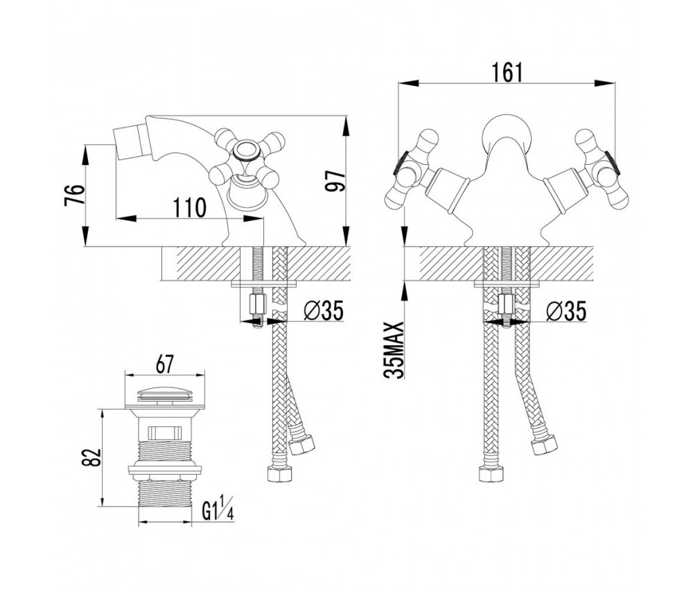 Смеситель для биде Lemark Vintage с донным клапаном (LM2808B)