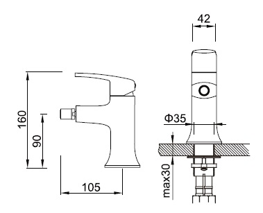 Смеситель для биде Zeegres Z.RILL, однорычажный. Без донного клапана.