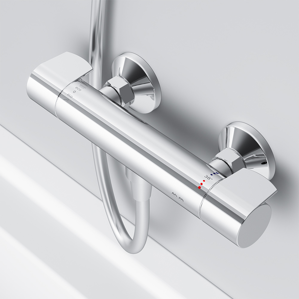 Термостатический картридж с высокочувствительным термоэлементом и быстрой реакцией на изменения температуры или давления надежно защищает от ожога даже при внезапном отключении холодной воды.