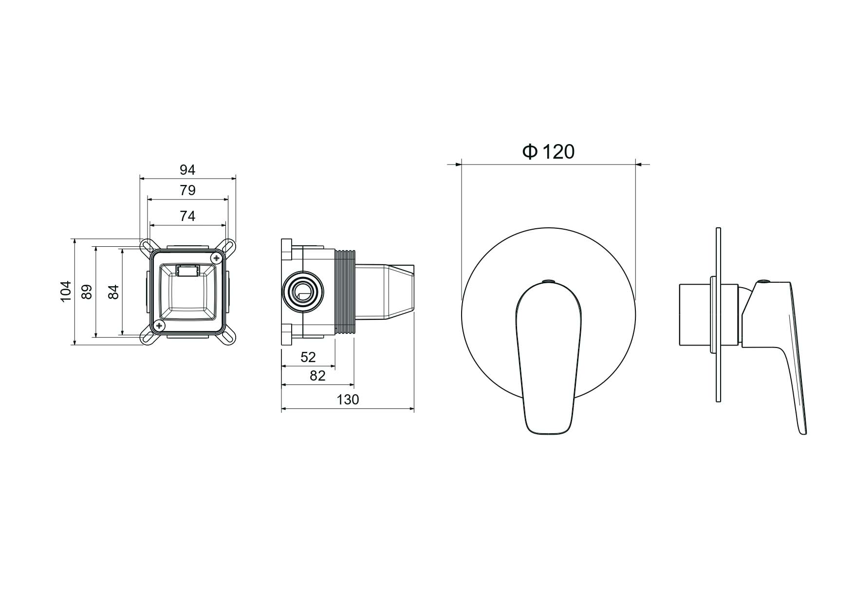 смеситель из латуни с установочной коробкой на 1 потребителя, ручка из цинкового сплава, картридж citec 35 мм, испания, декоративная пластина 3мм из нерж.