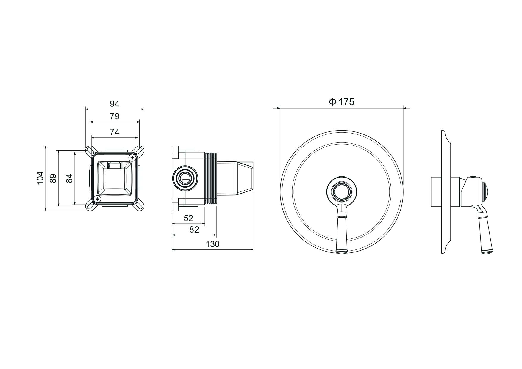 смеситель из латуни с установочной коробкой на 1 потребителя, ручка из цинкового сплава, картридж citec 35 мм, испания, декоративная накладка толщ. 1,2мм из нерж.