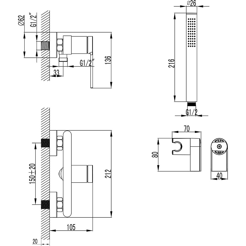 Смеситель для душа Azario Vincente с душевым комплектом хром (AZ-VRZ338326C)