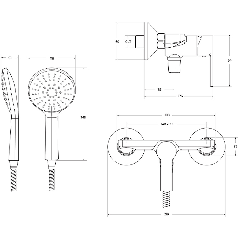 Смеситель для душа BelBagno с ручным душем, шлангом и держателем, хром (AURORA-ESDM-CRM)