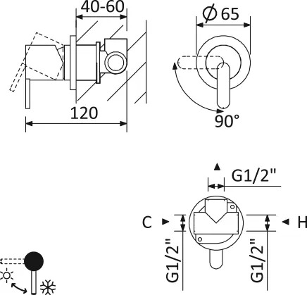 Смеситель для душа Cezares leaf встраиваемый на 1 выход чёрный матовый (LEAF-DIM-L-NOP)