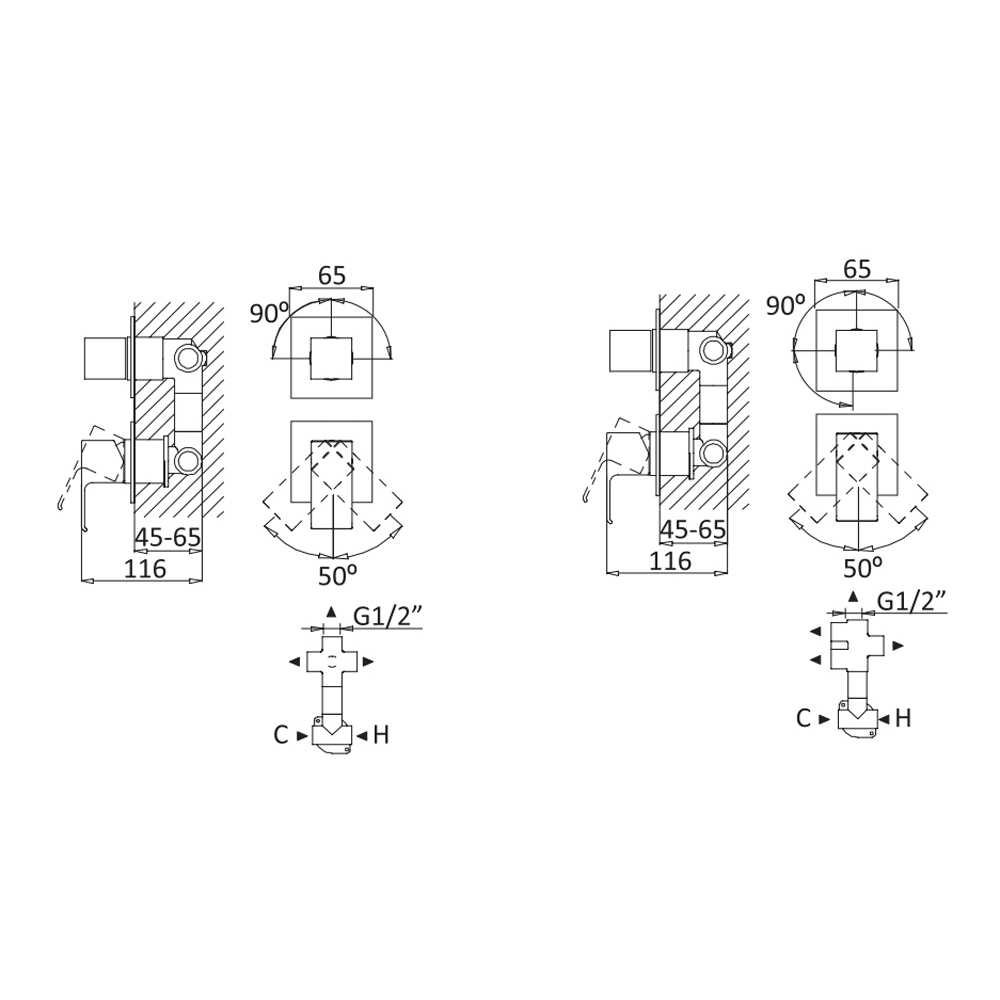 Смеситель для душа Cezares Porta встраиваемый переключатель на 3 выхода, черный матовый (PORTA-VDIM3-M-NOP)