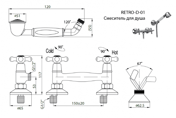 ОБРАТИТЕ ВНИМАНИЕ: РУЧНОЙ ДУШ, ДУШЕВОЙ ШЛАНГ И ДЕРЖАТЕЛЬ РУЧНОГО ДУША В КОМПЛЕКТАЦИЮ НЕ ВХОДЯТ