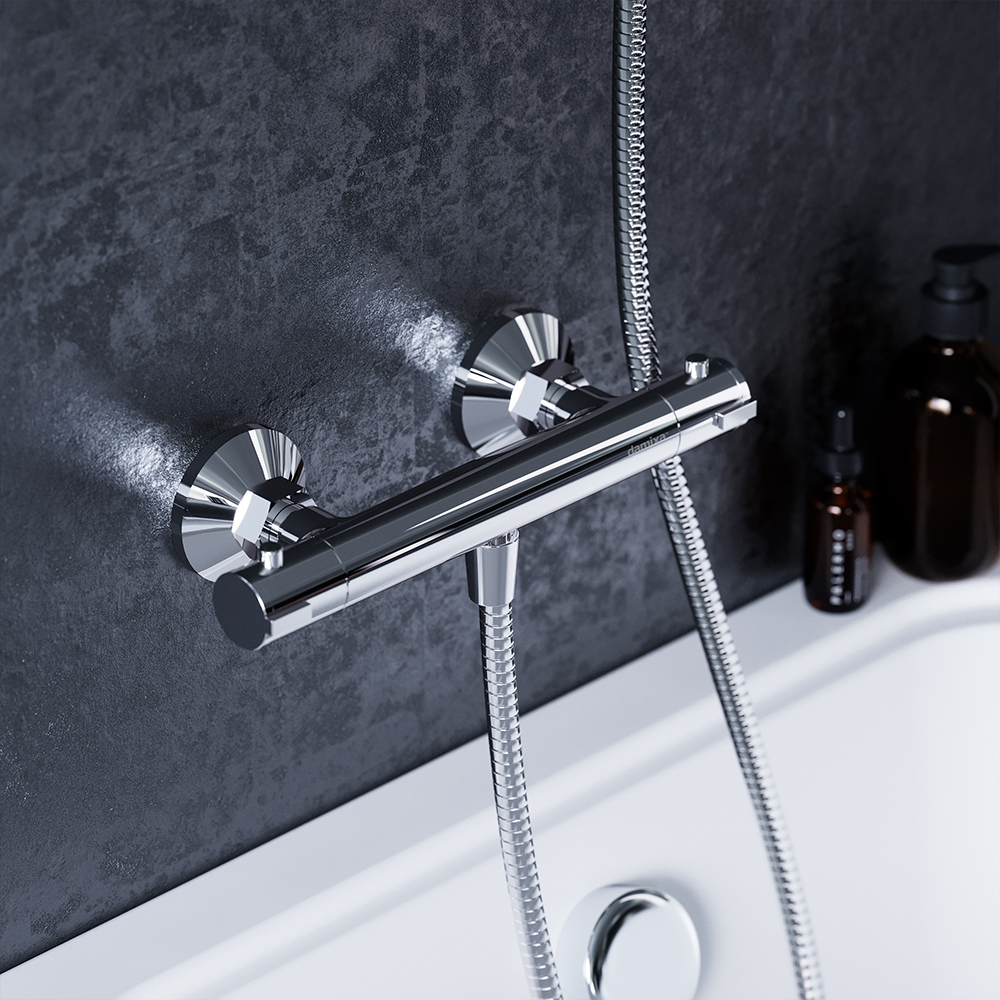 Термостатический картридж с высокочувствительным термоэлементом и быстрой реакцией на изменения температуры или давления в водопроводной сети надежно защищает от ожога даже при внезапном отключении холодной воды. Настройте температуру воды на свой вкус и используйте эти настройки при каждом принятии душа нажав одну кнопку на смесителе.