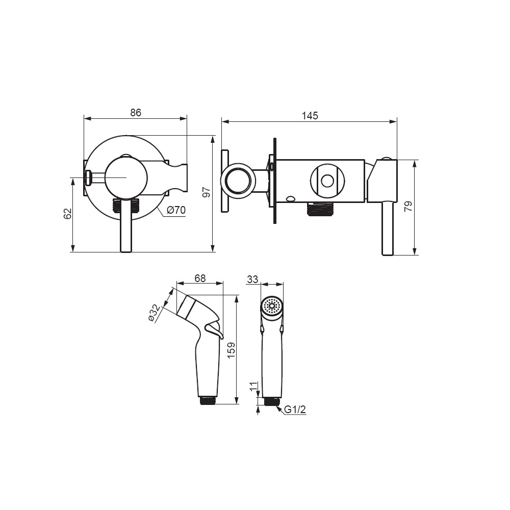 Смеситель для душа Damixa Option с гигиеническим душем, хром (211000000)