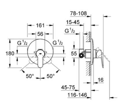 Смеситель для душа Grohe BauEdge со встроенным механизмом (29078000)