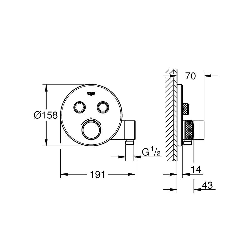 Смеситель для душа Grohe Grohtherm SmartControl внешняя часть с термостатом хром (29120000)