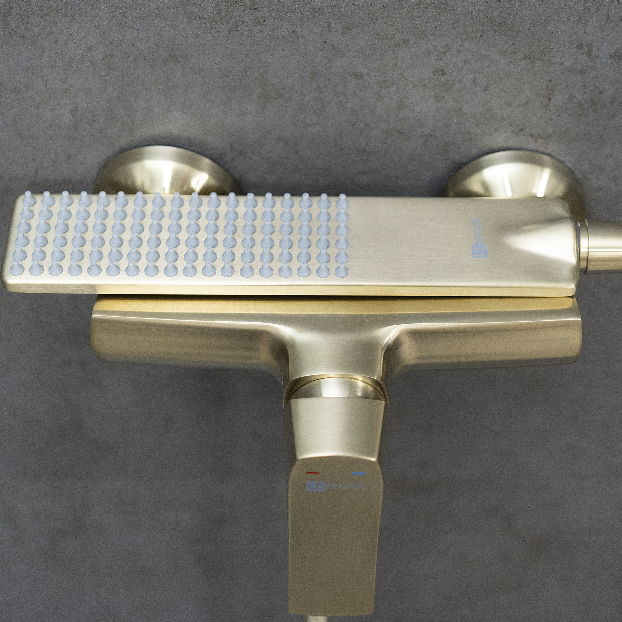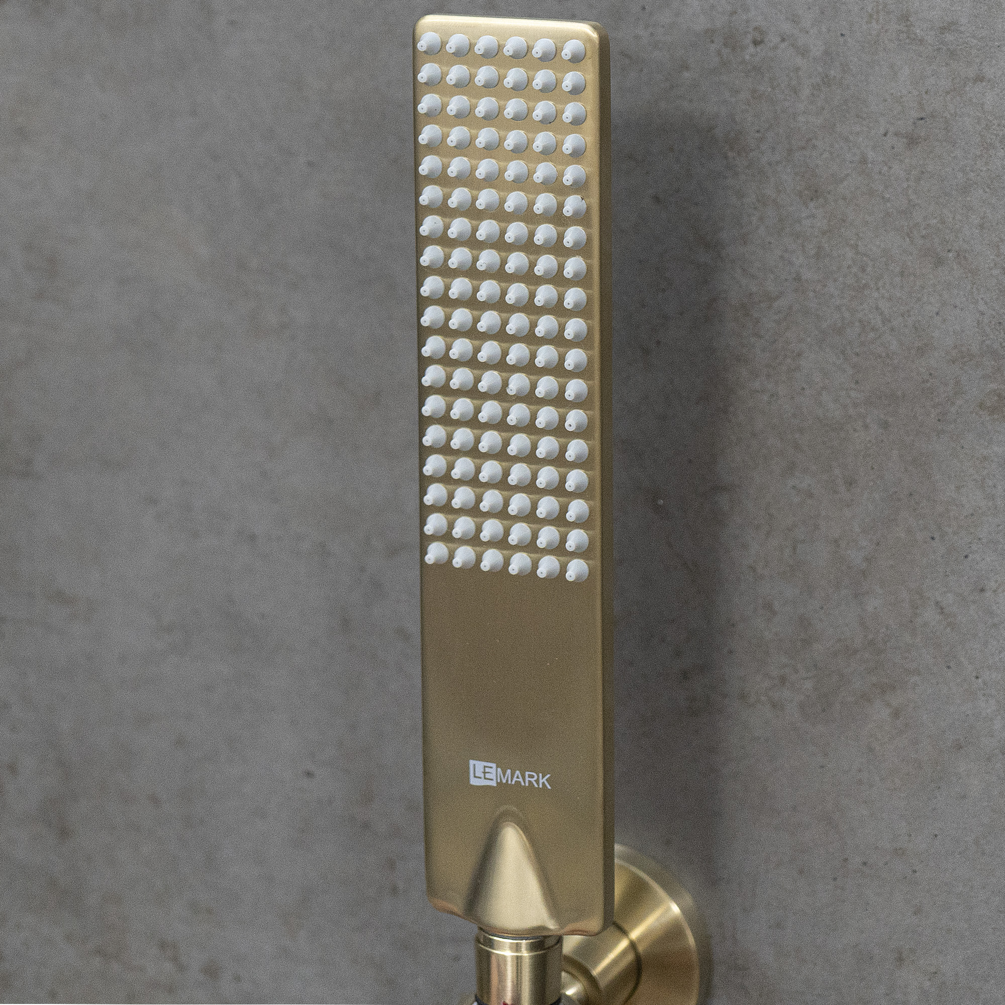 Смеситель для душа Lemark с душевым комплектом брашированное светлое золото (LM7203BG)