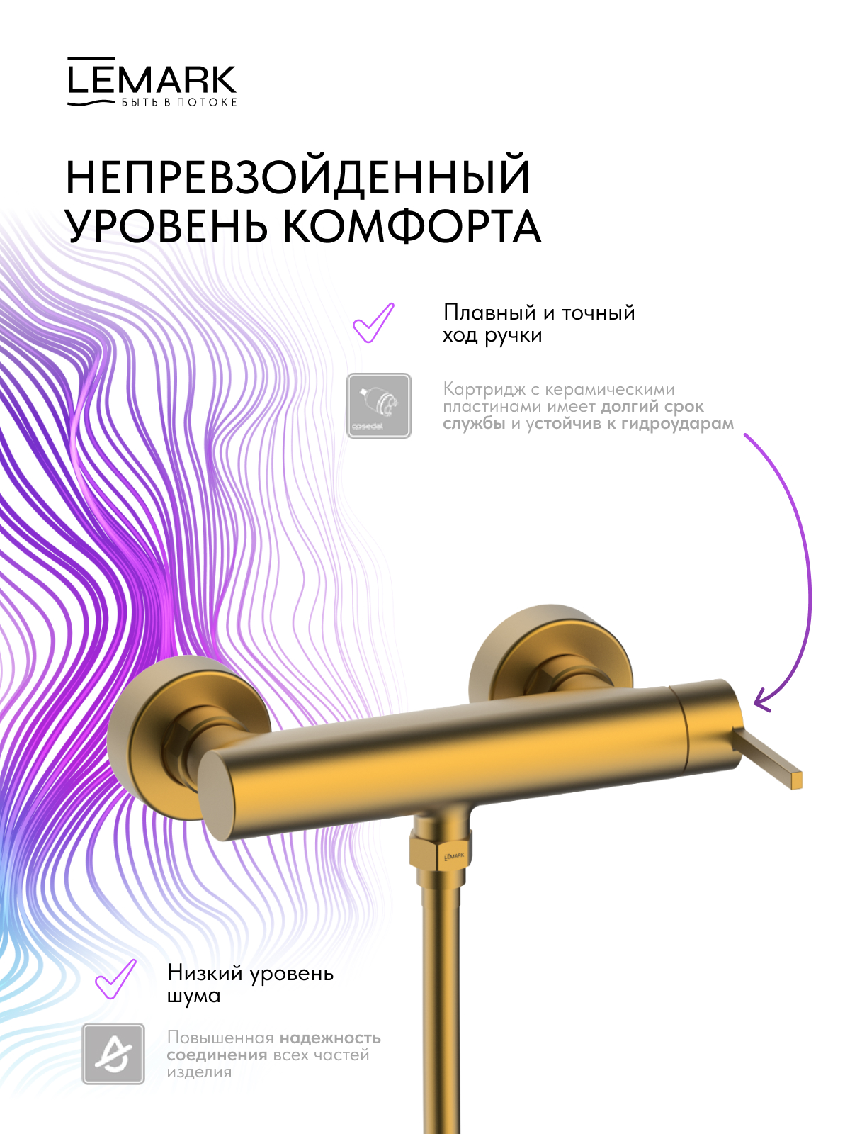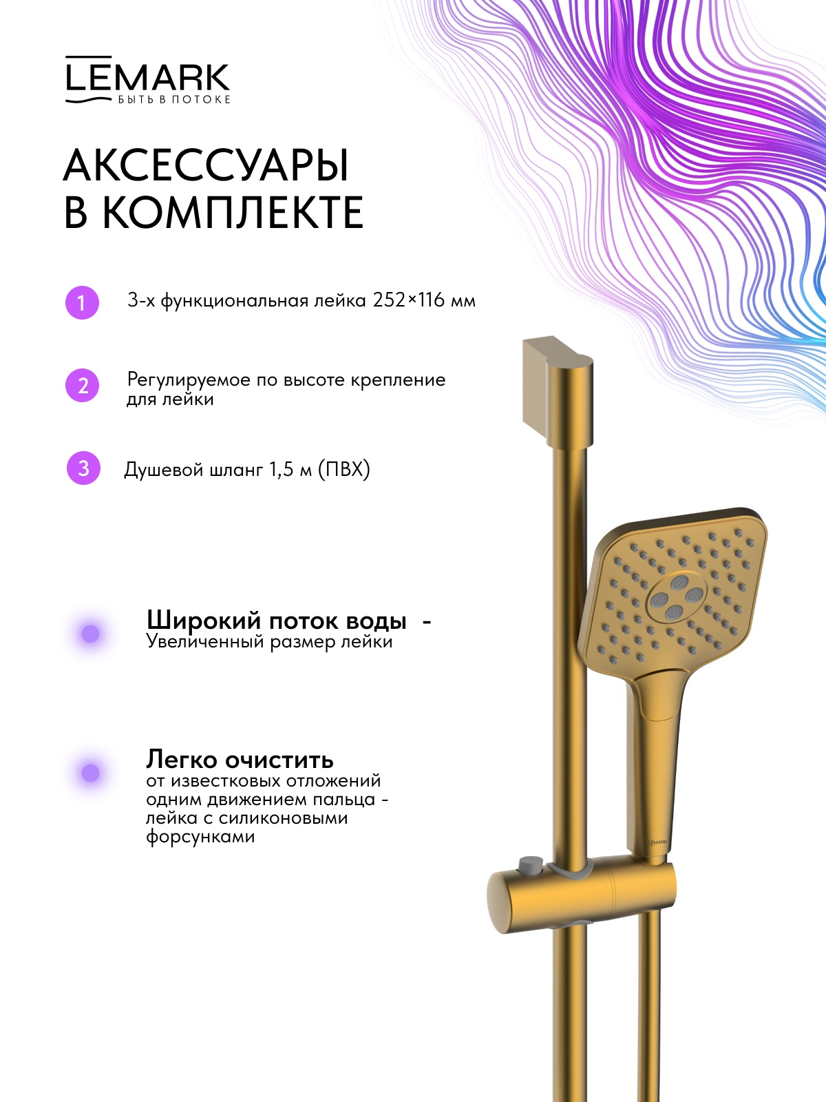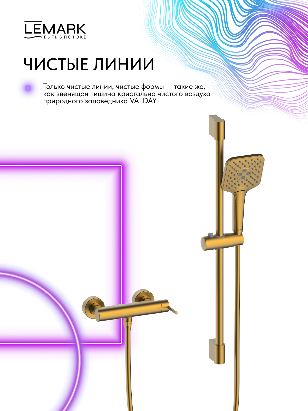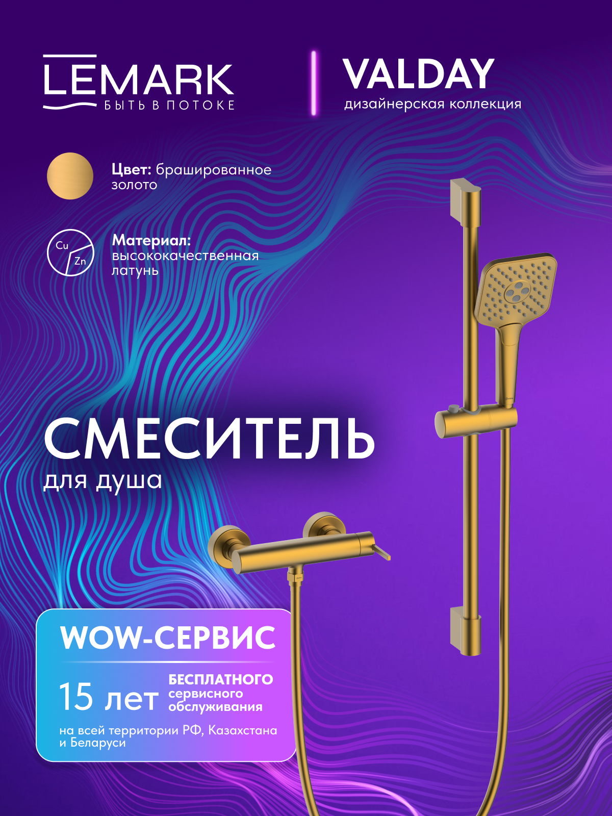 Смеситель для душа Lemark Valday с душевым комплектом золотой (LMF-8124B-BRG)