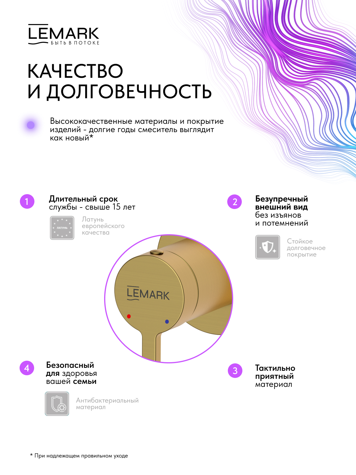 Срок службы смесителя – 15 лет / аксессуаров - 5 лет