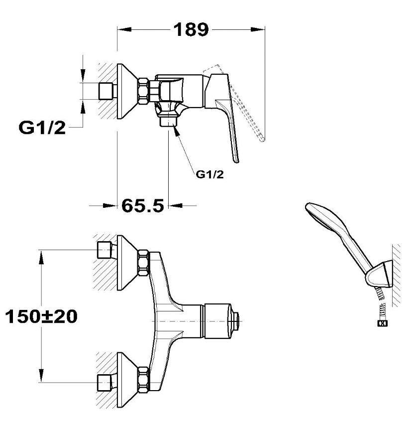 Смеситель для душа с противонакипоной лейкой и шлангом 1500 мм. Корпус выполнен из высококачественной латуни, картридж 35 мм.