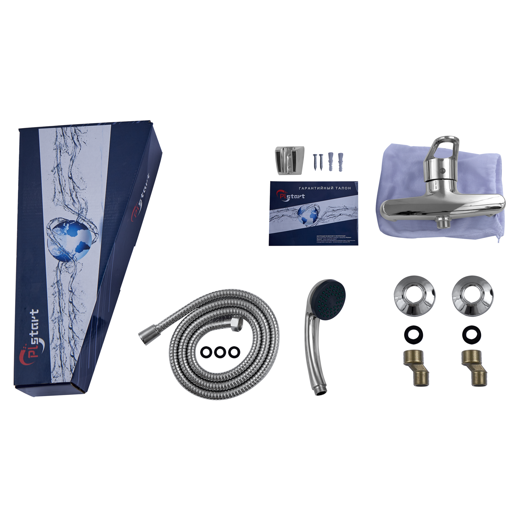 Смеситель для душа Plstart с душевым комплектом хром (PL2006)